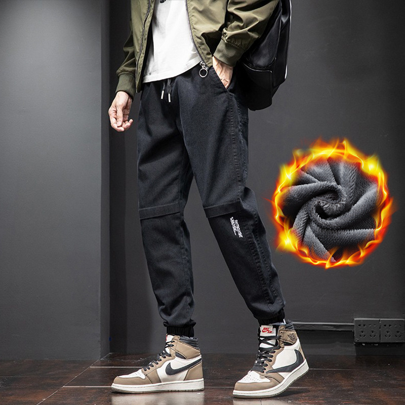 남성용 바지 두꺼운 벨벳 2022 새로운 가을과 겨울 야외 따뜻한 캐주얼 바지 느슨한 발가락 긴 바지스토어 가기