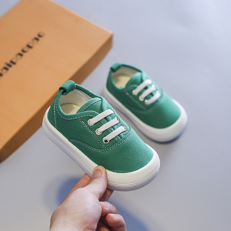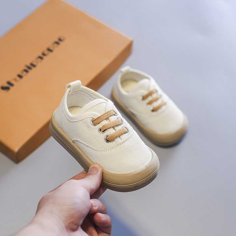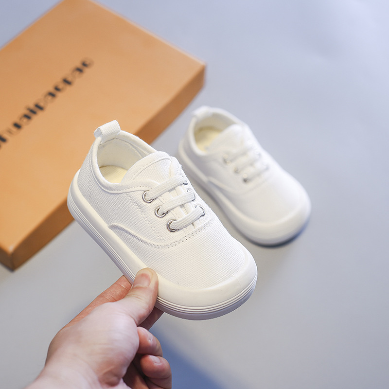 어린이 흰색 캔버스 신발 여아 신발 한국 유행 스타일 싱글 신발 슬립온 남자 아기 유치원 실내 신발 가을