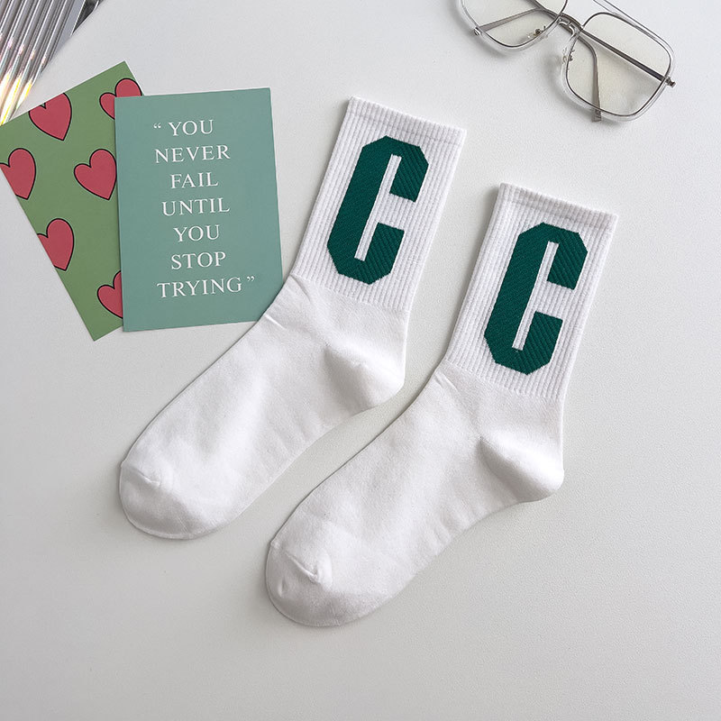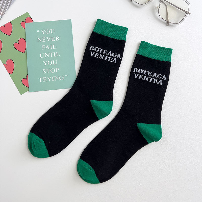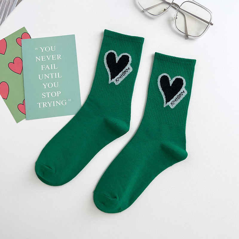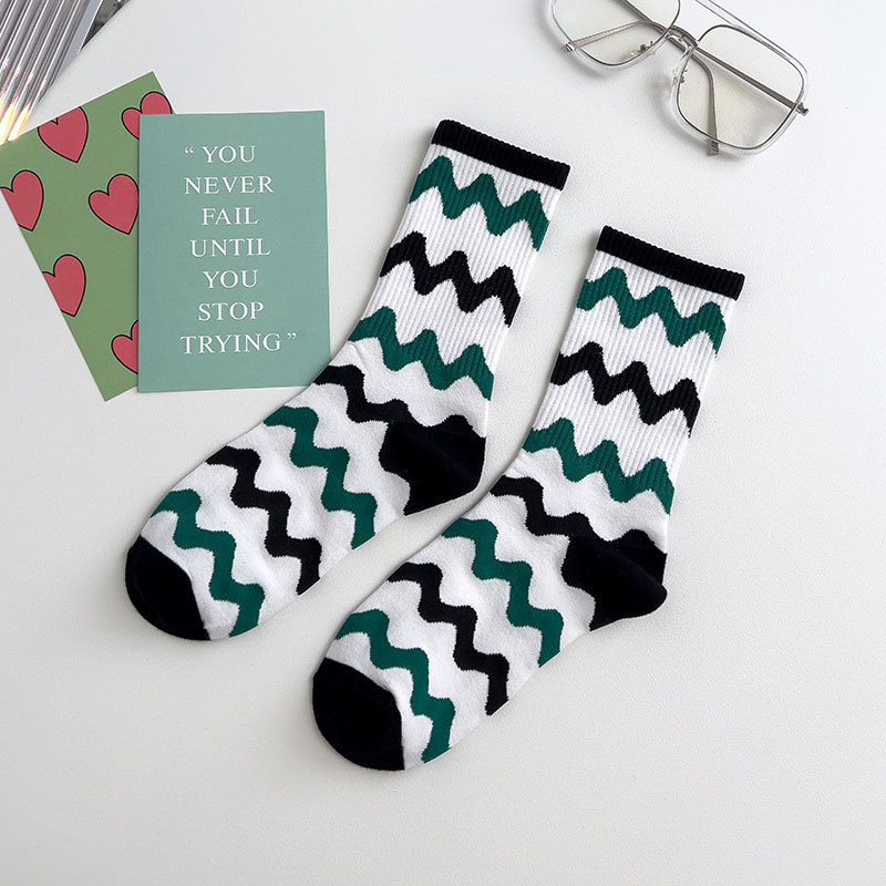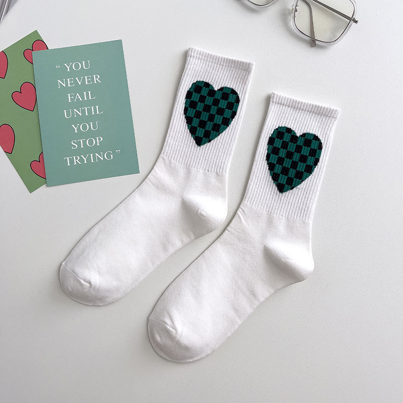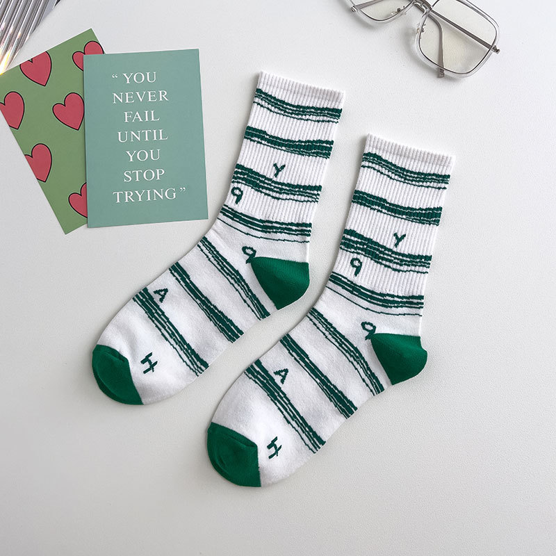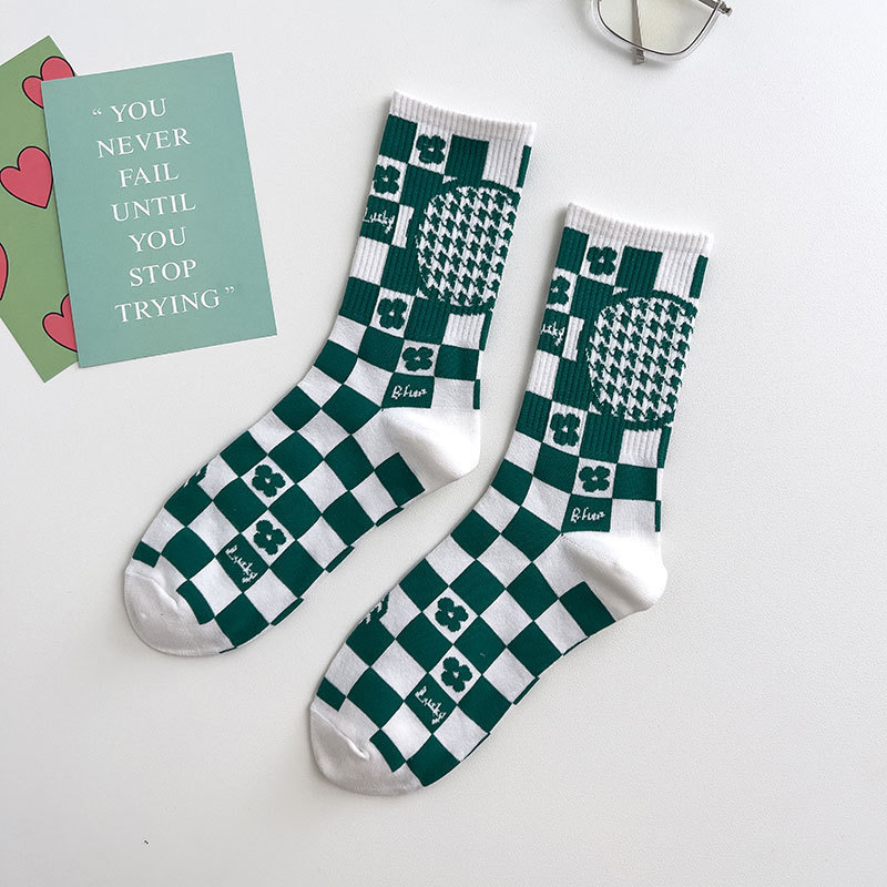 Zhuji 양말 여성용 봄과 여름 얇은 일본 연애 편지 중간 길이 양말 녹색 사이버 축하 바둑판 스포츠 양말스토어 가기