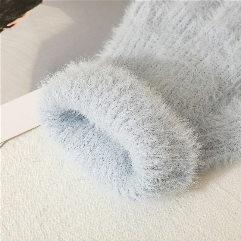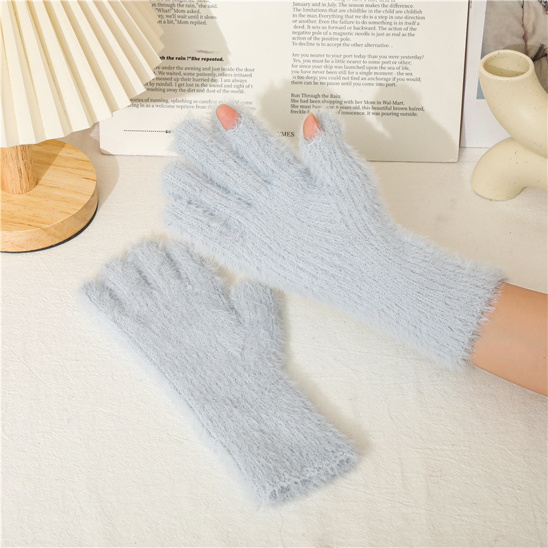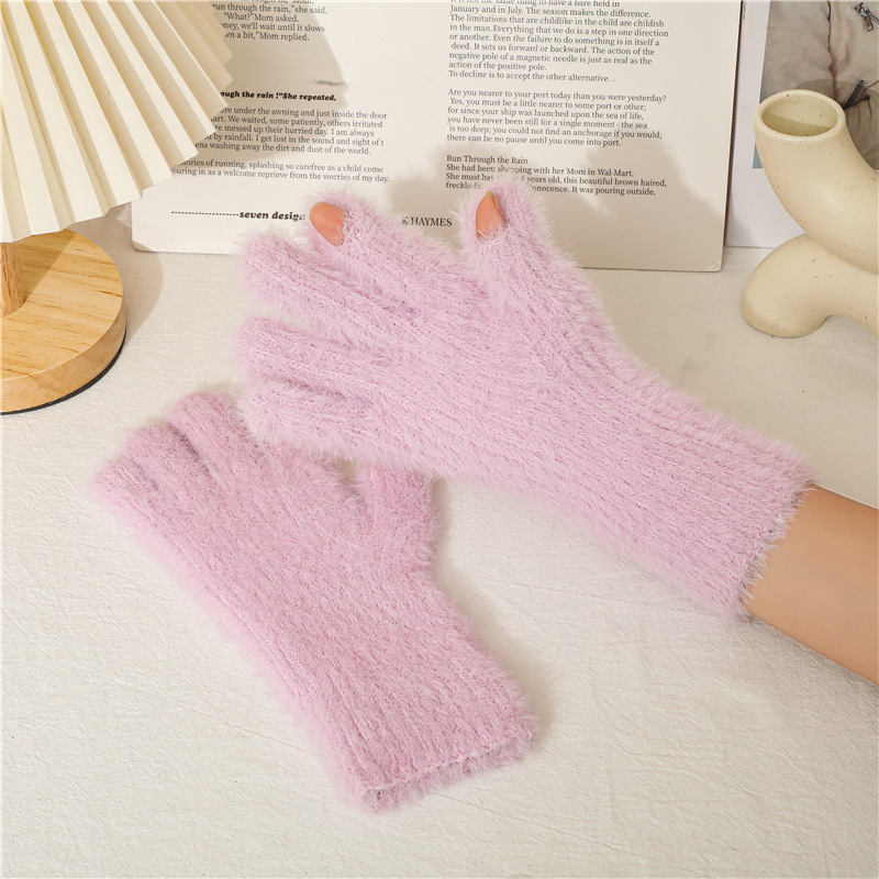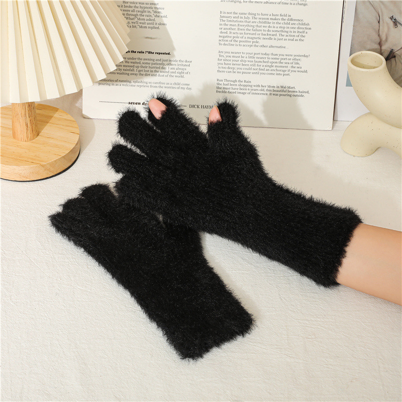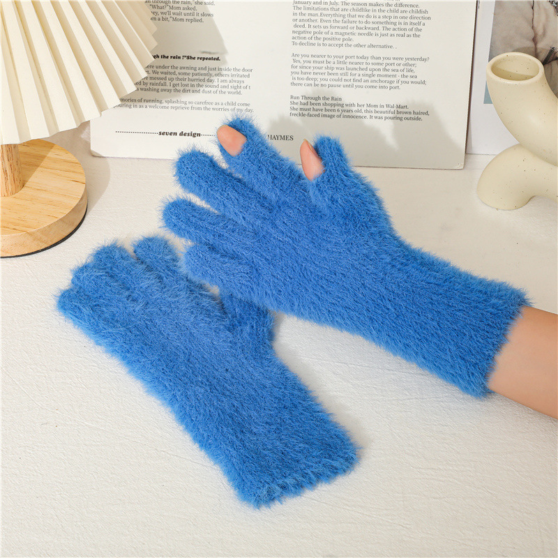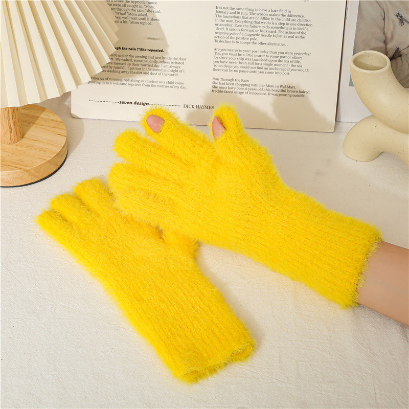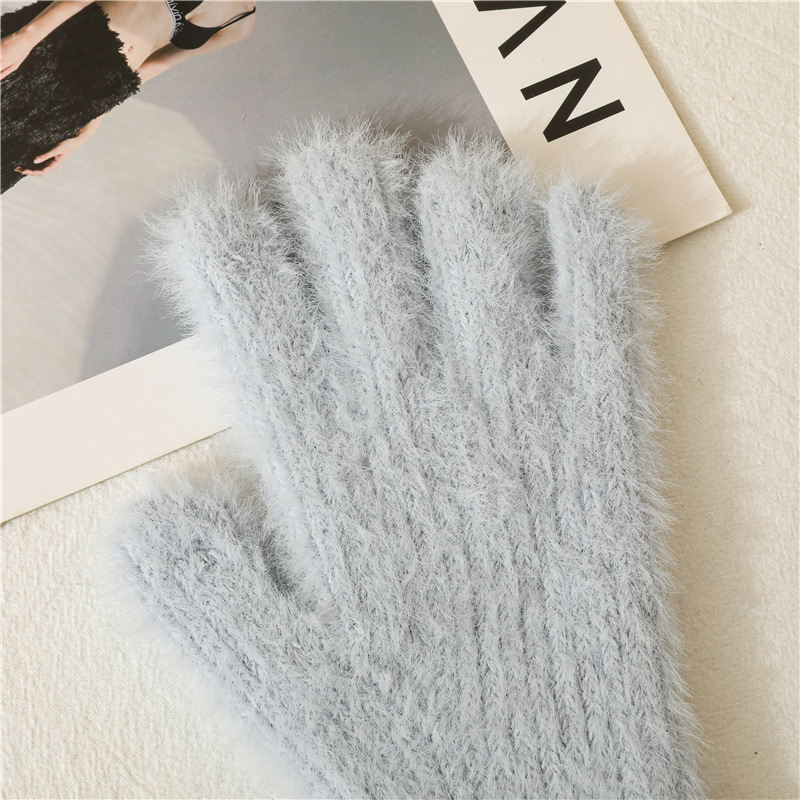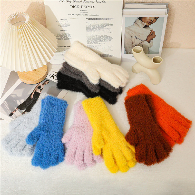 겨울 한국 스타일 모조 밍크 머리 기모 방한 따뜻한 장갑 간단한 사탕 색 학생 다섯 손가락 장갑 성인 손