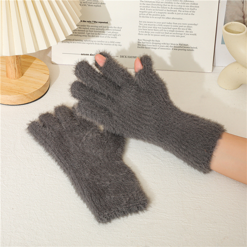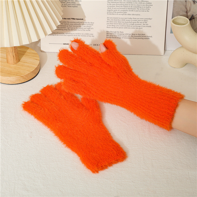 겨울 한국 스타일 모조 밍크 머리 기모 방한 따뜻한 장갑 간단한 사탕 색 학생 다섯 손가락 장갑 성인 손스토어 가기