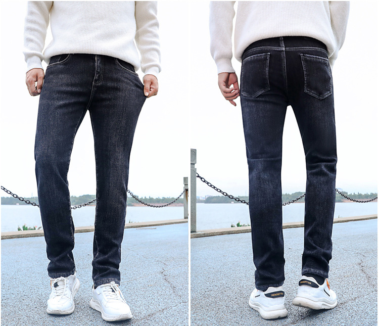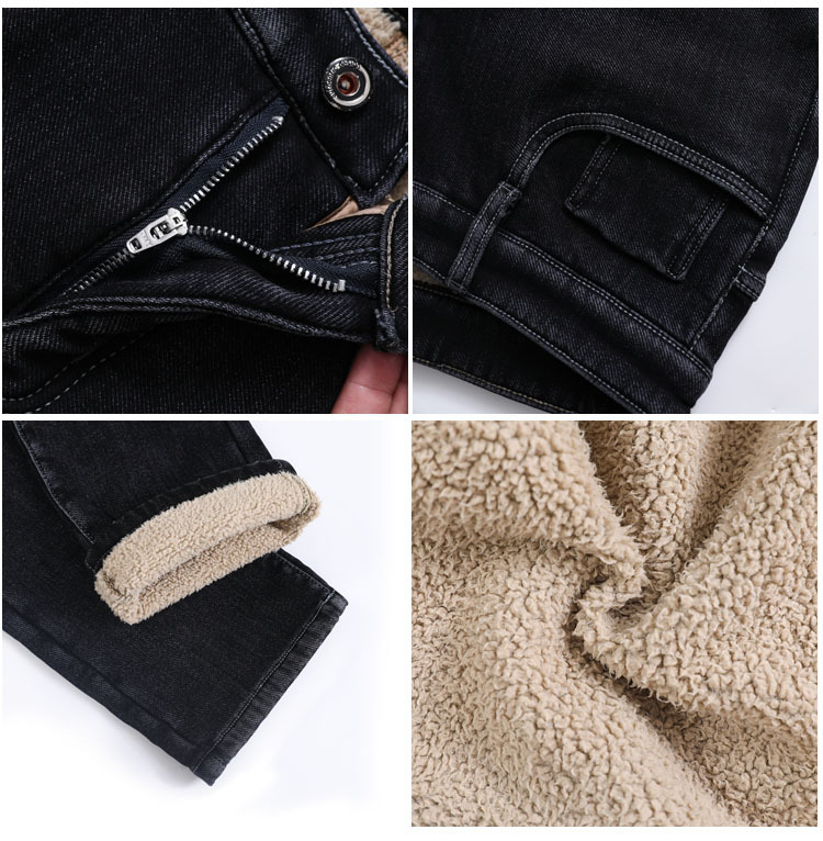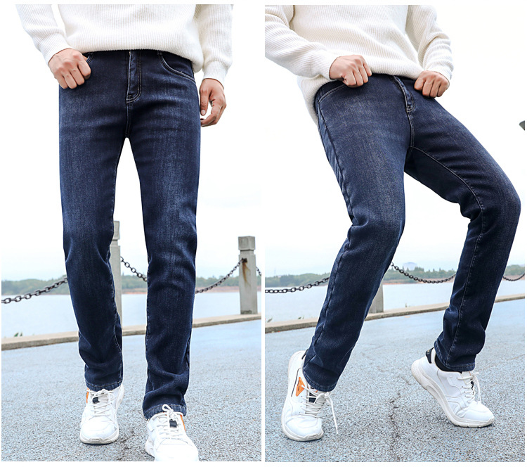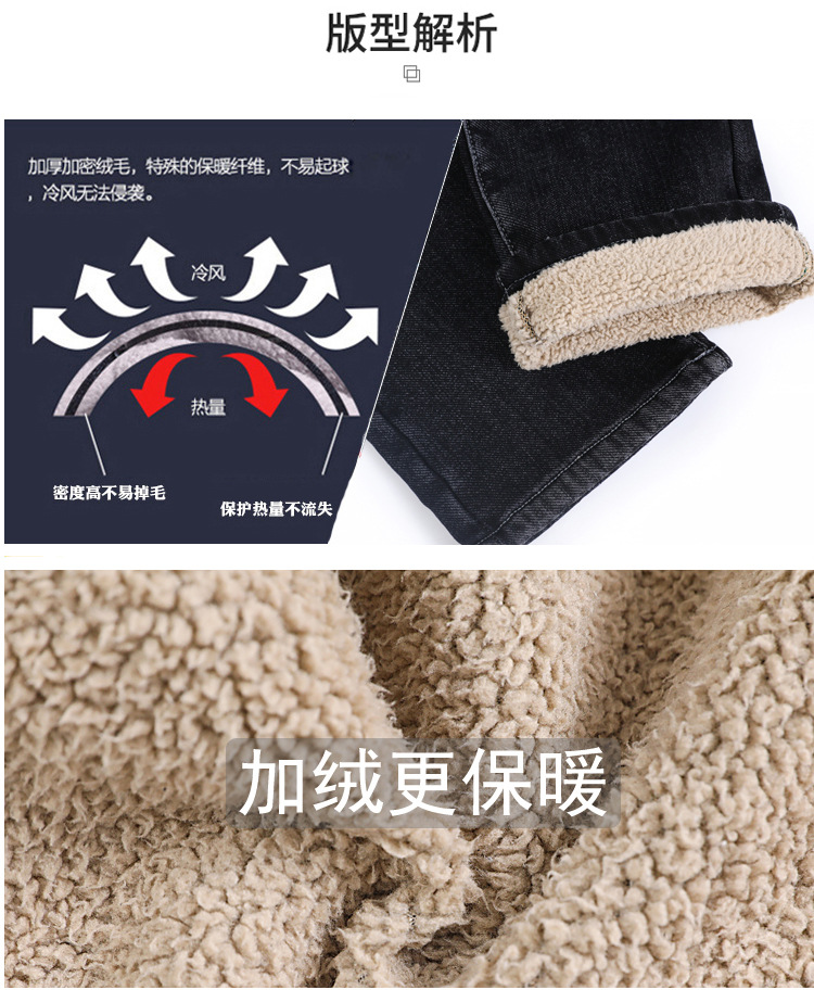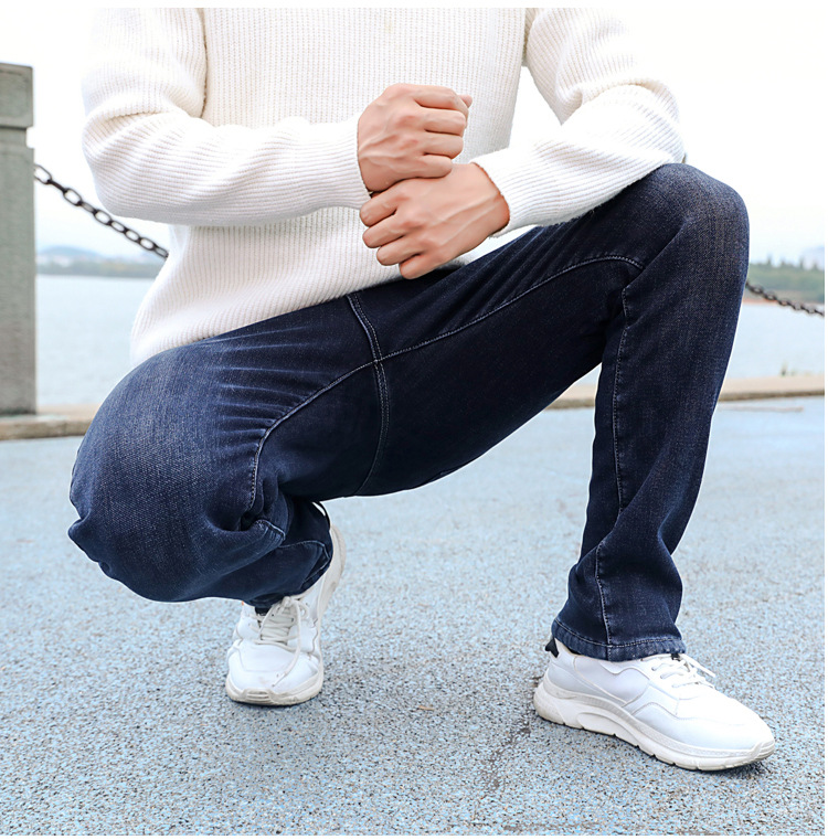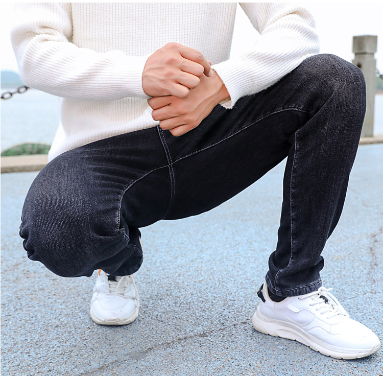 긴 청바지 남성용 하이 웨이스트 느슨한 스트레이트 탄성 양고기 벨벳 따뜻한 패딩 바지 키 120C,M스토어 가기