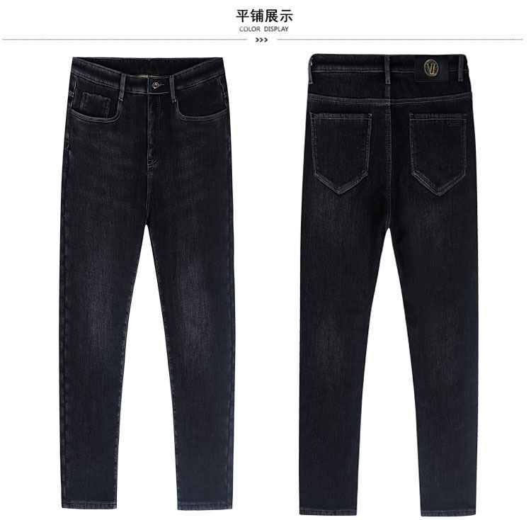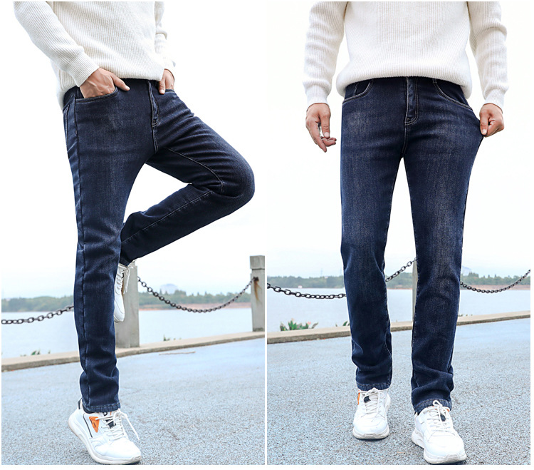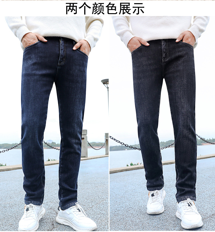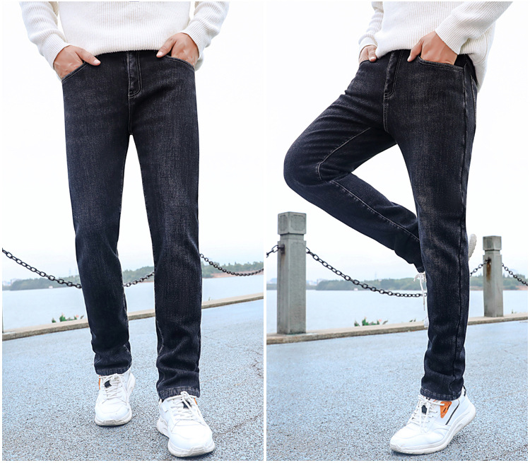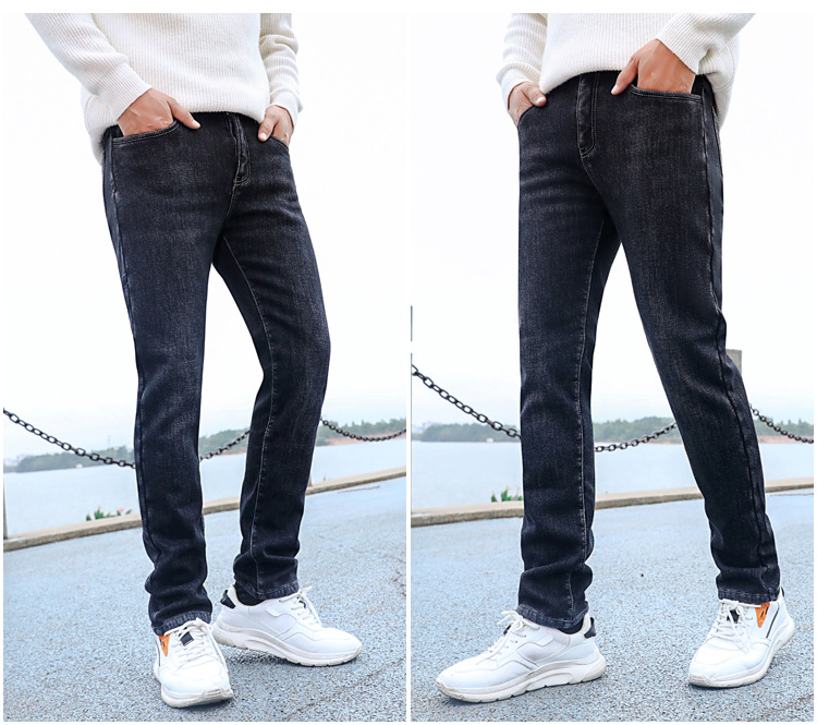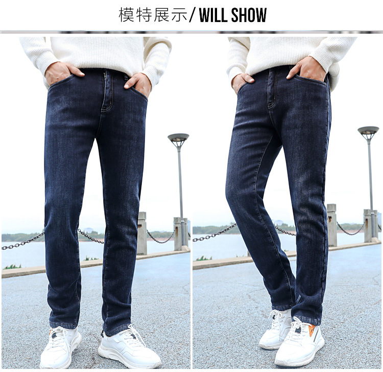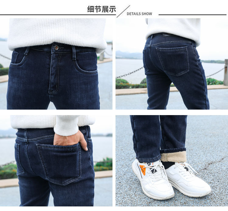 긴 청바지 남성용 하이 웨이스트 느슨한 스트레이트 탄성 양고기 벨벳 따뜻한 패딩 바지 키 120C,M스토어 가기