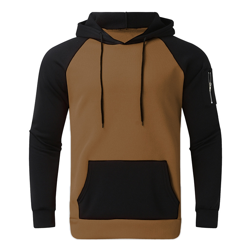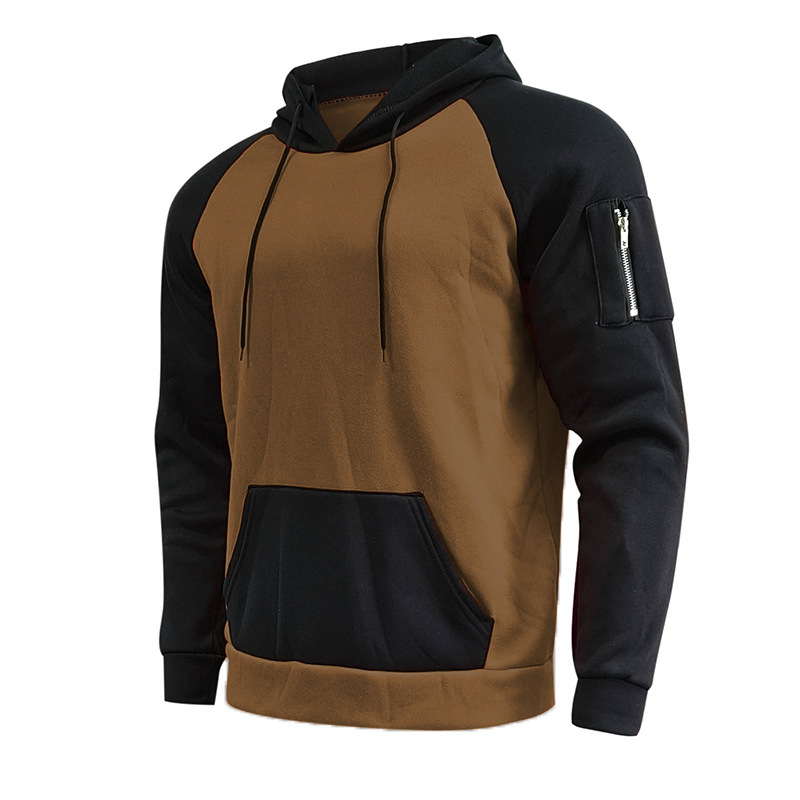 가을과 겨울 새로운 유럽과 미국 대외 무역 아마존 긴 소매 색상 일치 후드 스웨터 남자의 기모 두꺼운 지퍼 포켓 탑