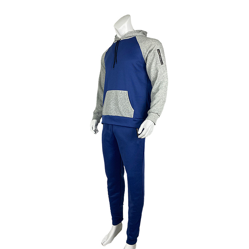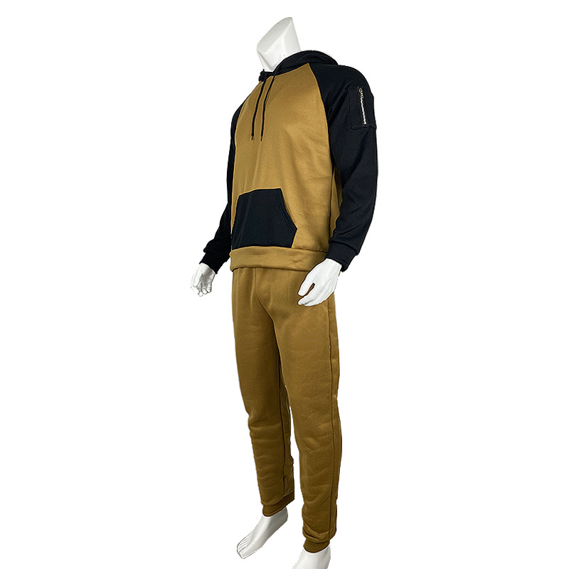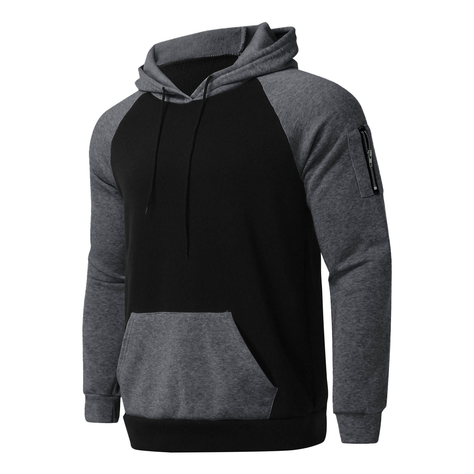 가을과 겨울 새로운 유럽과 미국 대외 무역 아마존 긴 소매 색상 일치 후드 스웨터 남자의 기모 두꺼운 지퍼 포켓 탑스토어 가기