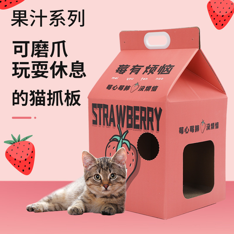 우유 상자 고양이 발톱 보드 고양이 둥지 골판지 고양이 스크래치 보드 닫힌 고양이 만화 고양이 용품 장난감 스크래치 저항스토어 가기