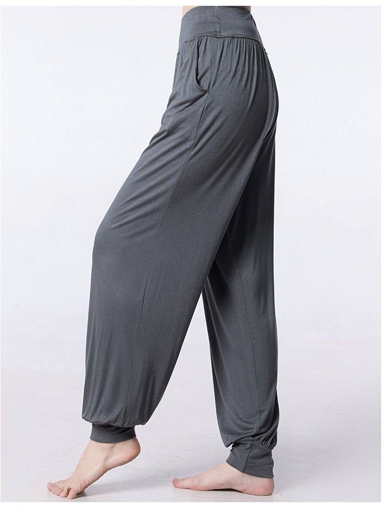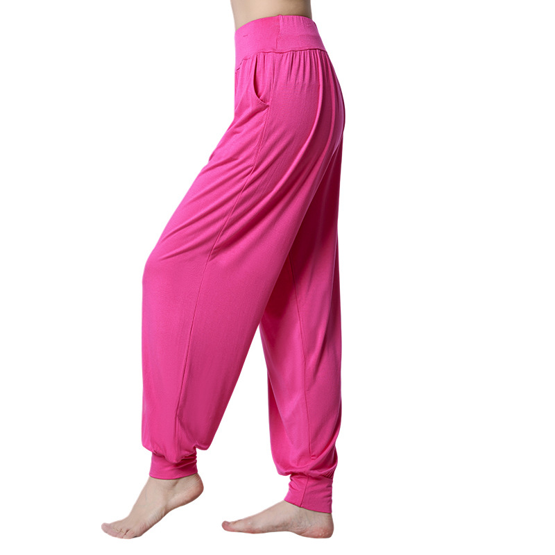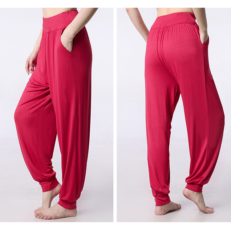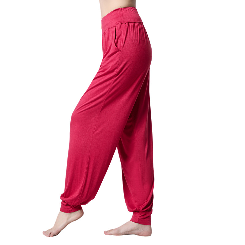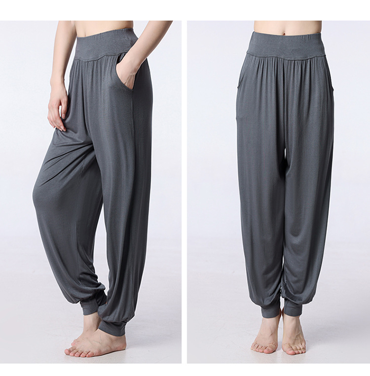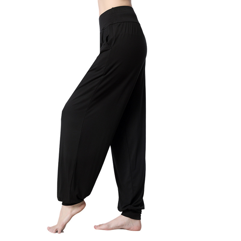 모달 느슨한 스포츠 바지 요가 바지 플랫 허리 포켓 블루머 피트니스 바지 연습 러닝 팬츠 댄스 바지스토어 가기