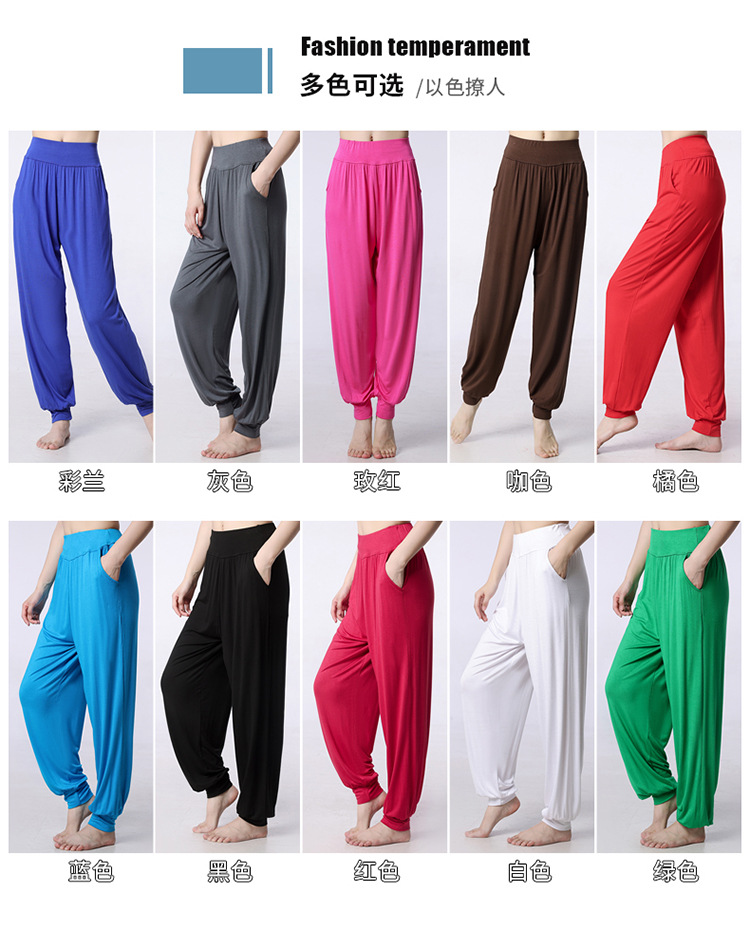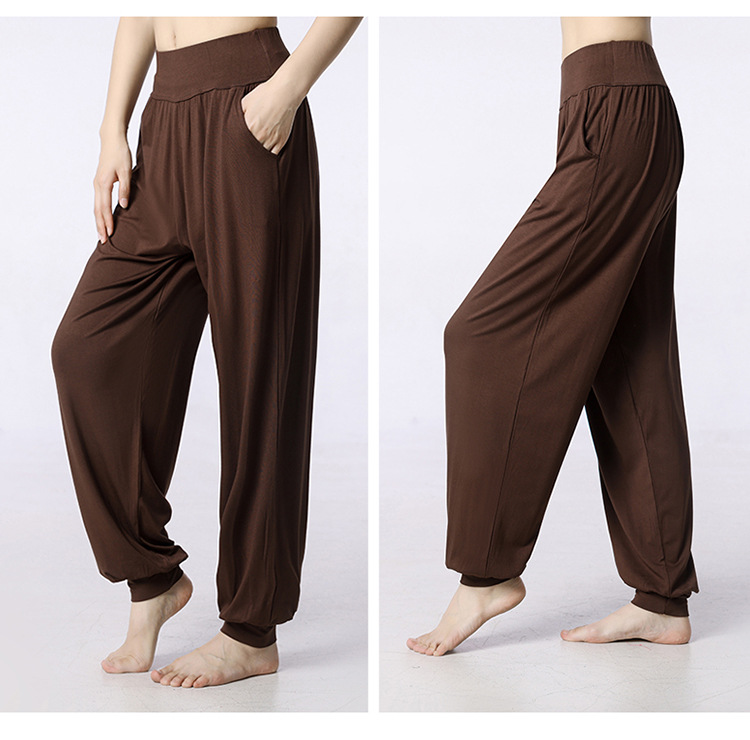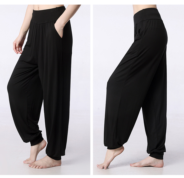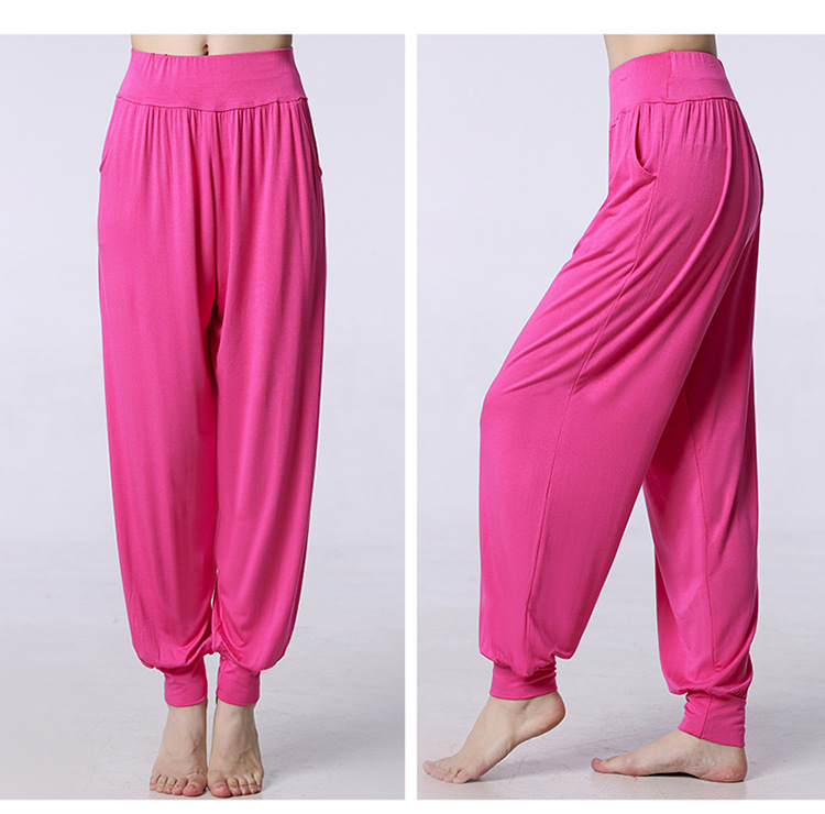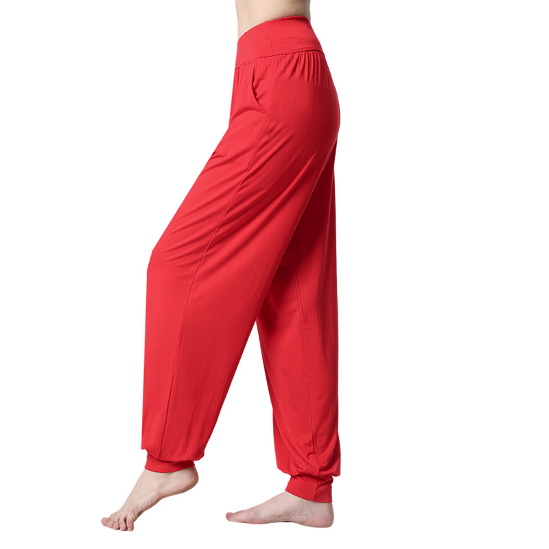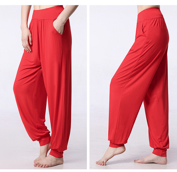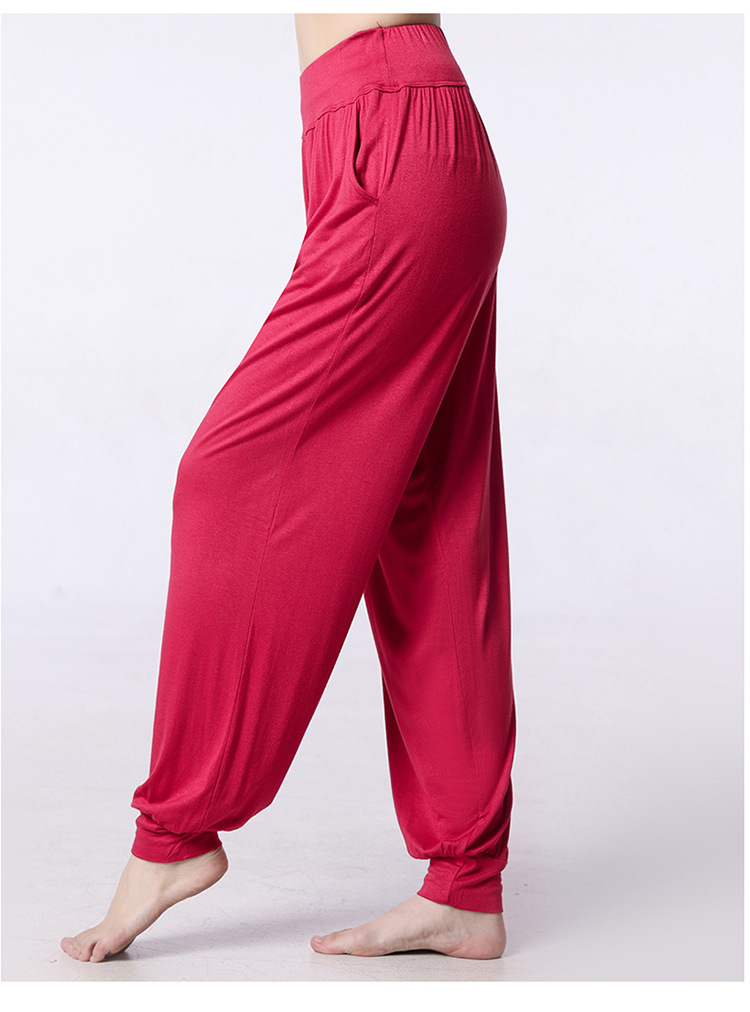 모달 느슨한 스포츠 바지 요가 바지 플랫 허리 포켓 블루머 피트니스 바지 연습 러닝 팬츠 댄스 바지스토어 가기