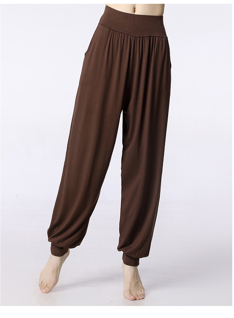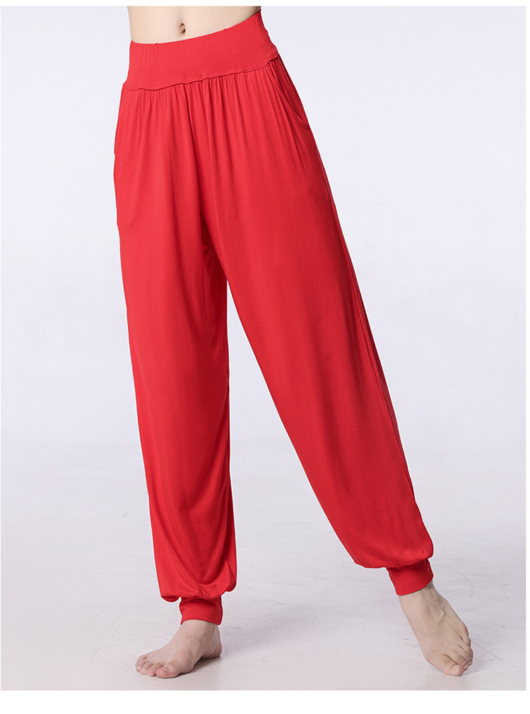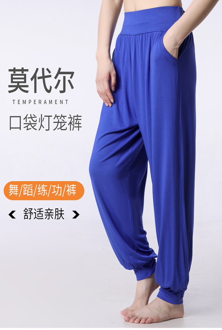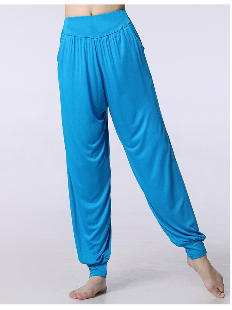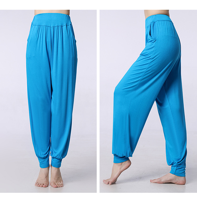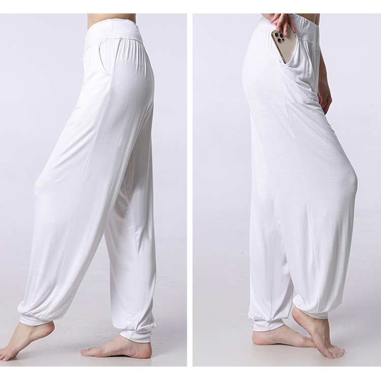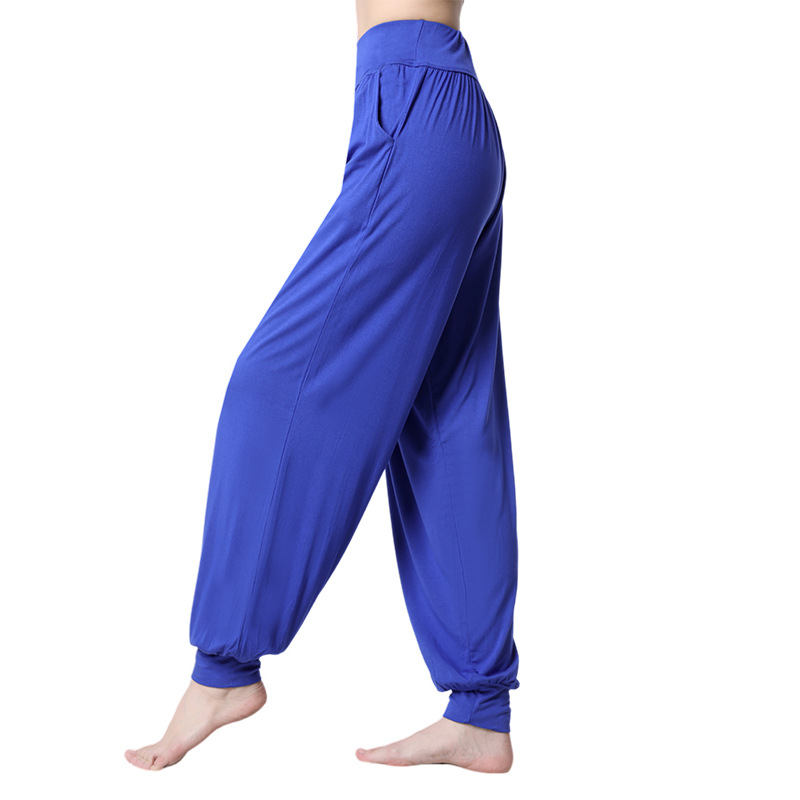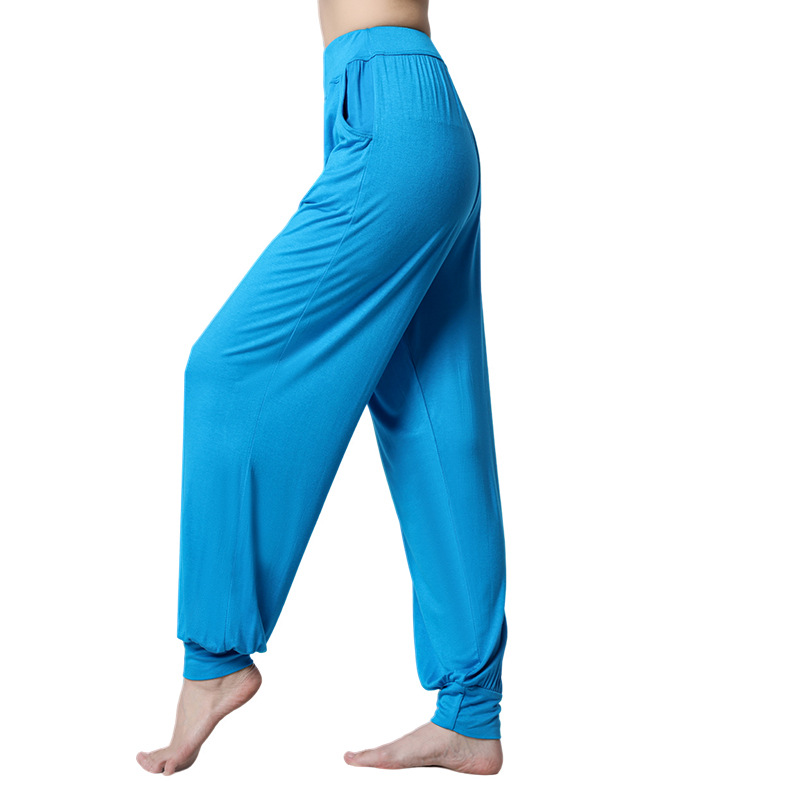 모달 느슨한 스포츠 바지 요가 바지 플랫 허리 포켓 블루머 피트니스 바지 연습 러닝 팬츠 댄스 바지