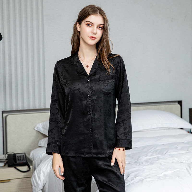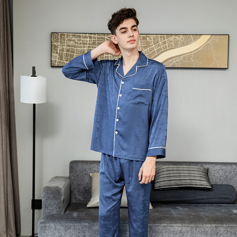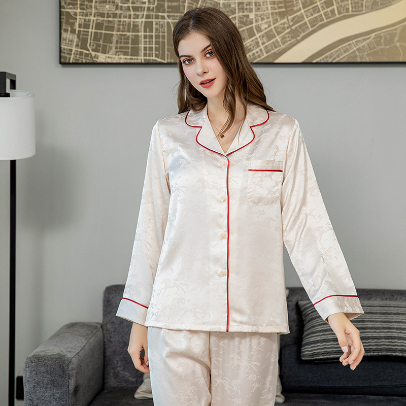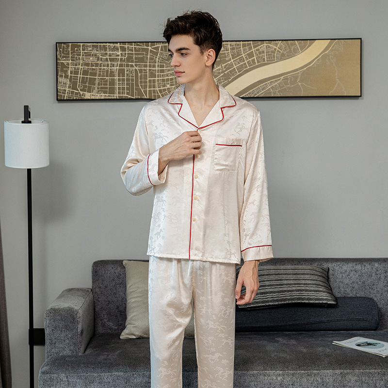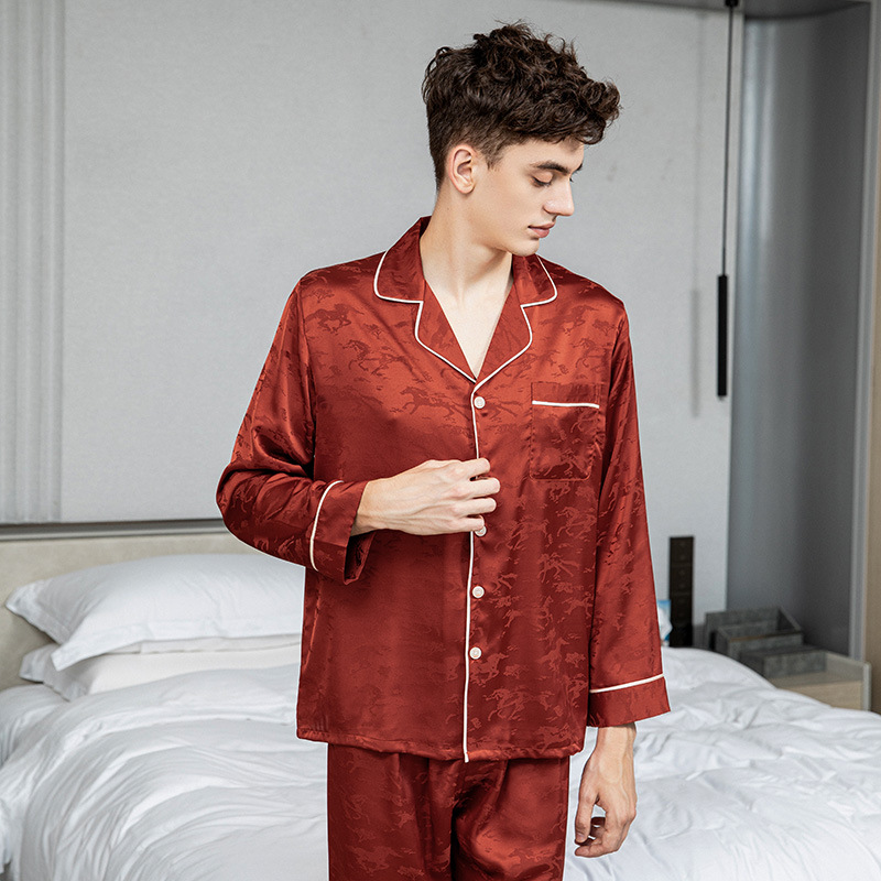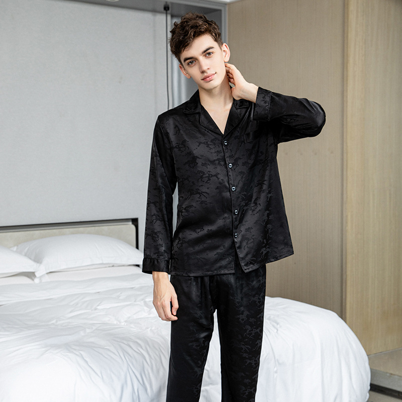 커플 잠옷 여성 여름 신상 아이스 실크 긴팔 빅사이즈 세트 가을 겨울 남성 고급 자카드 홈웨어