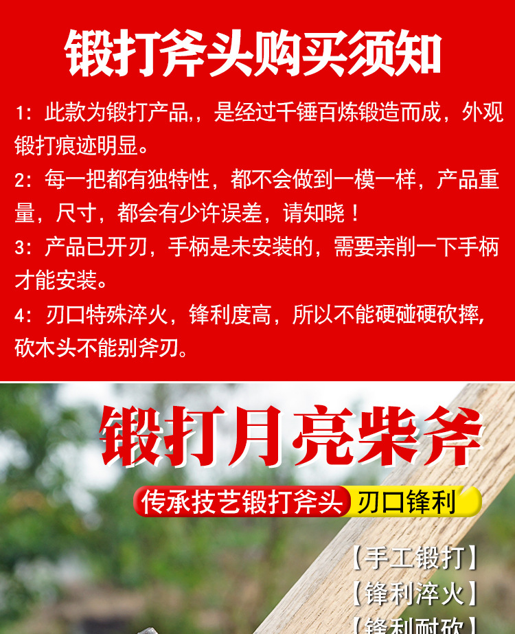 • 엣지 블레이드 달 도끼 약 1.5kg +70 나무 손잡이