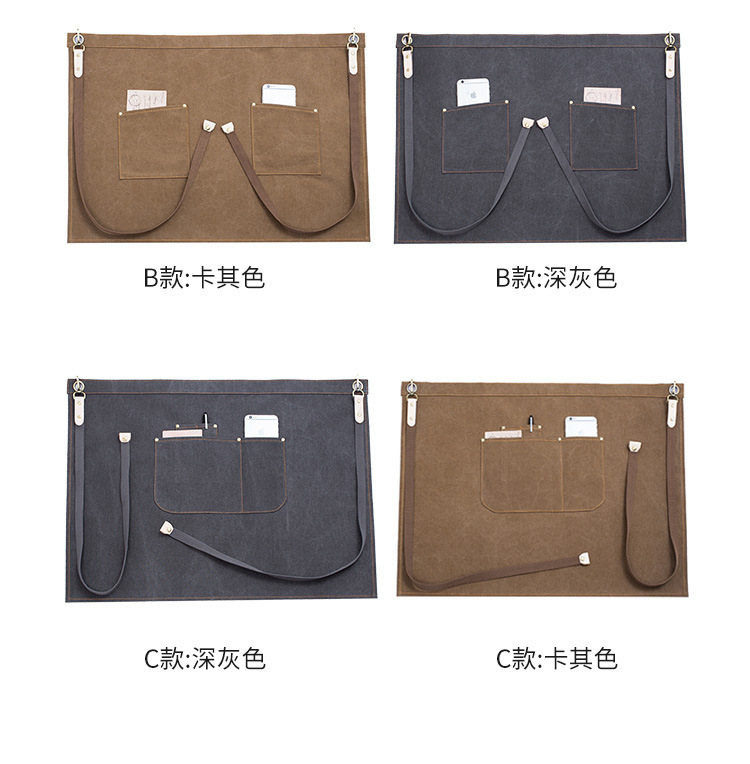 반쪽 앞치마, 커피숍, 레스토랑, 여성 작업복, 남성용 단색 앞치마, 인쇄 가능, 내마모성, 오염 방지