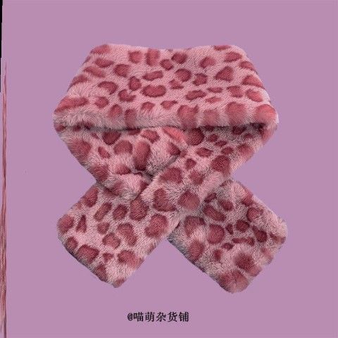핑크색 레오파드 프린트 짧은 스카프 여성용 겨울 따뜻한 부드러운 플러시 크로스 스카프 두꺼운 트렌디 다용도 귀여운스토어 가기