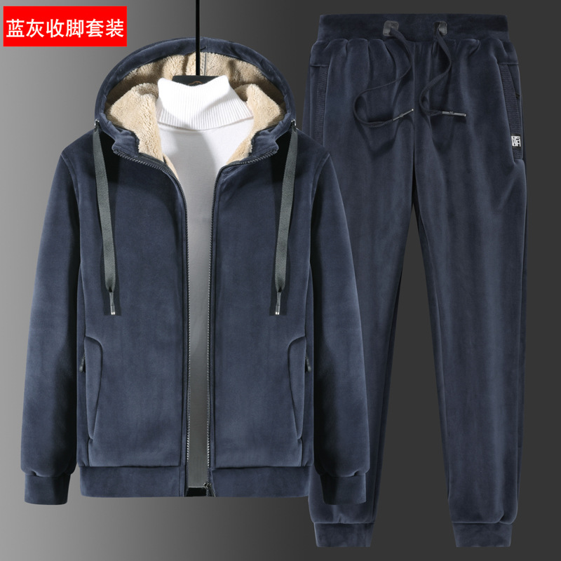 기모 두꺼운 겨울 실버 폭스 벨벳 플러스 사이즈 스웨터 세트 남자의 따뜻한 양고기 벨벳 재킷 남자의 스포츠웨어 투피스 세트스토어 가기