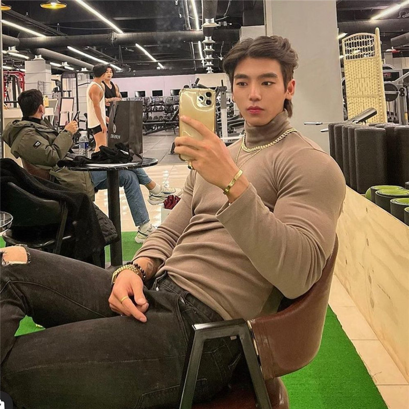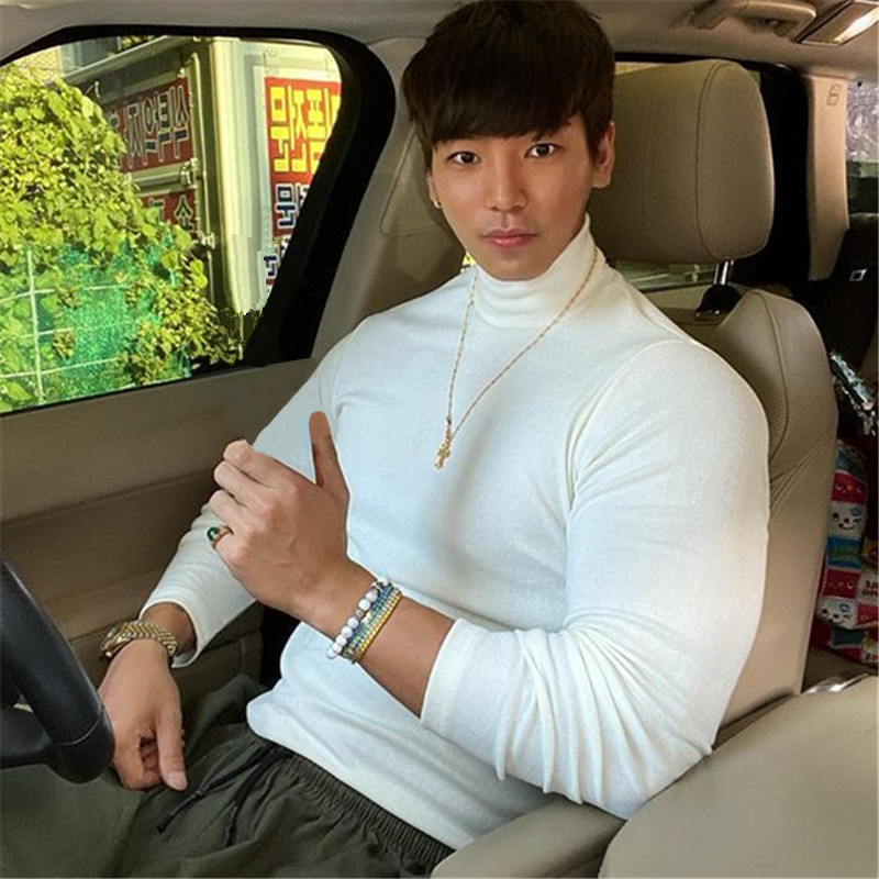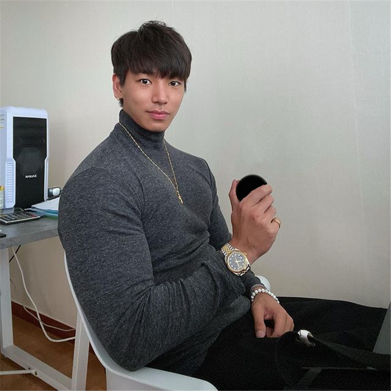 새로운 가을과 겨울 하이 칼라 벨벳 단색 플러스 사이즈 근육 피트니스 스포츠 티셔츠 남성용 슬림핏 따뜻한 옷 기본 셔츠스토어 가기