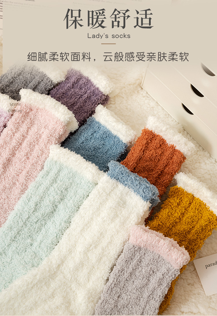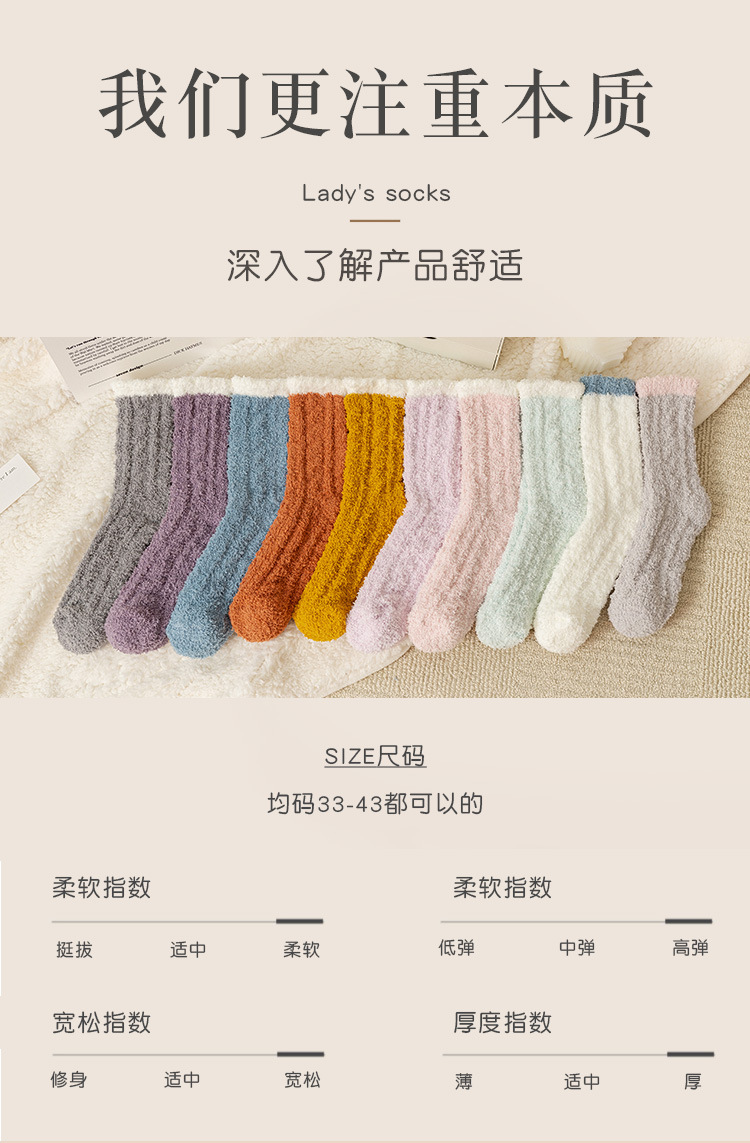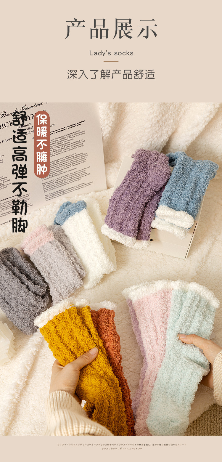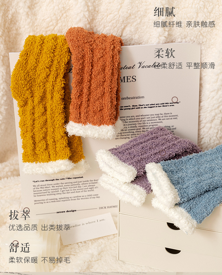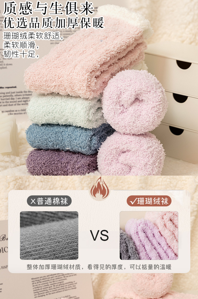 여성용 산호 벨벳 양말, 가을 겨울 플러스 벨벳 및 두꺼운 홈 일본식 단색 따뜻하고 귀여운 만화 수면 양말스토어 가기