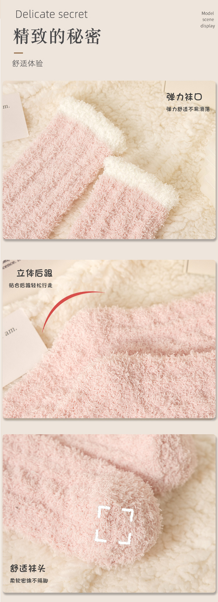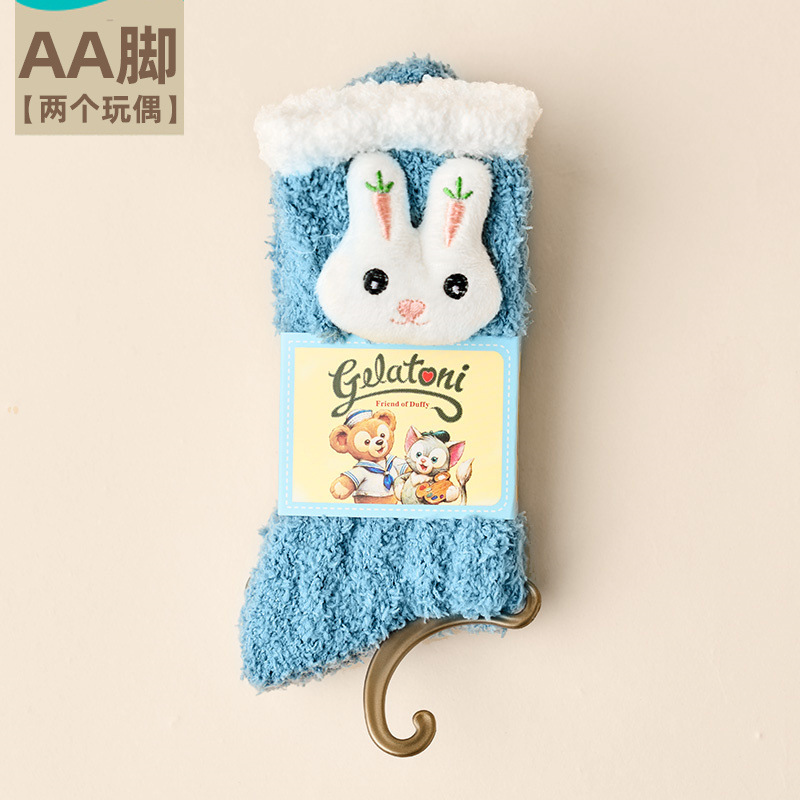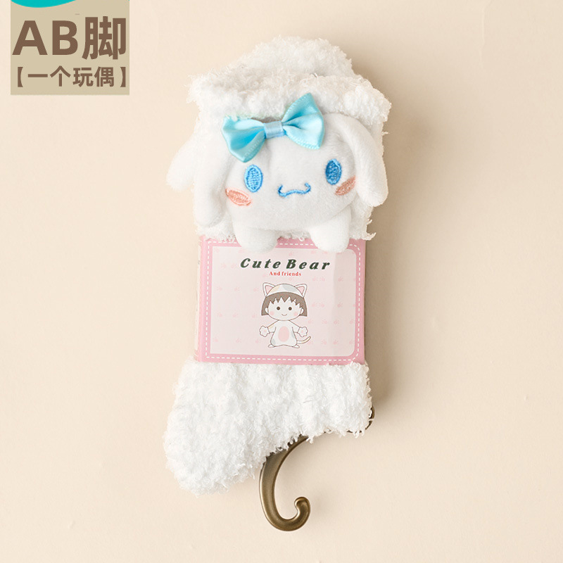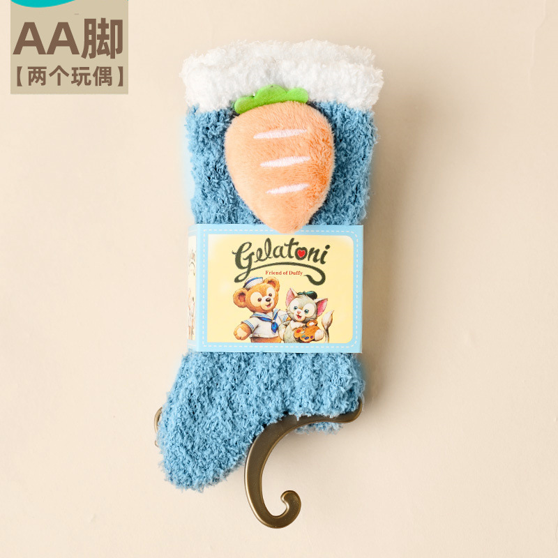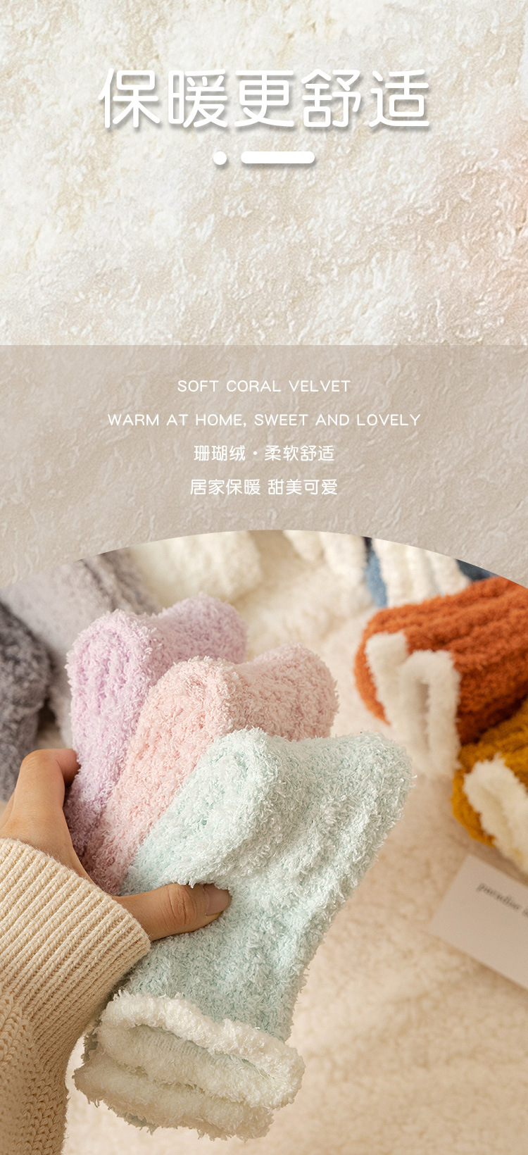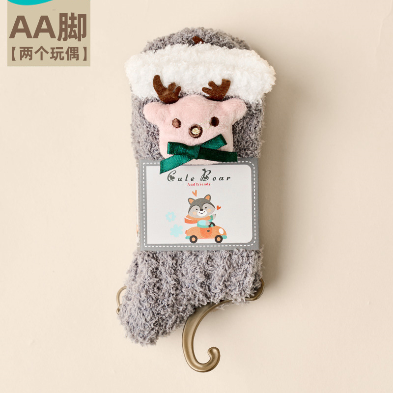 여성용 산호 벨벳 양말, 가을 겨울 플러스 벨벳 및 두꺼운 홈 일본식 단색 따뜻하고 귀여운 만화 수면 양말스토어 가기