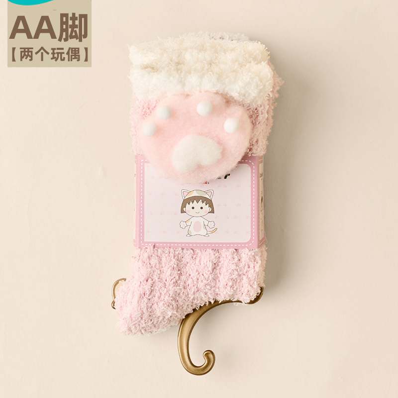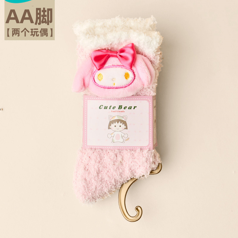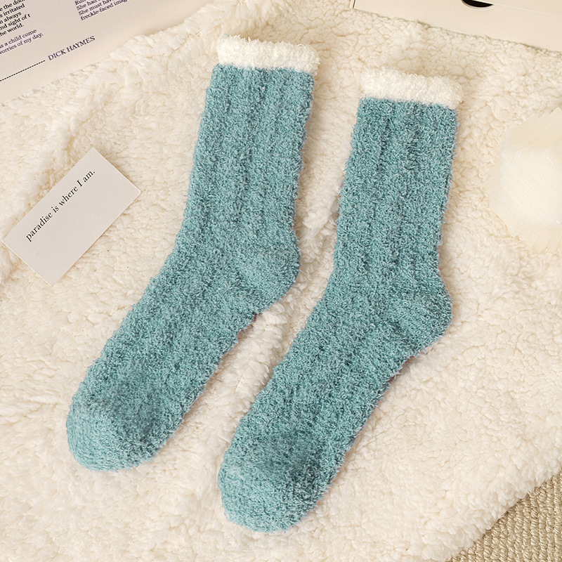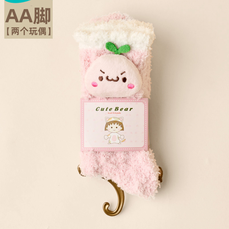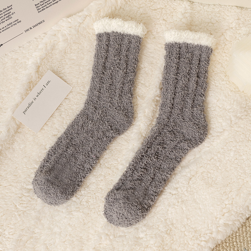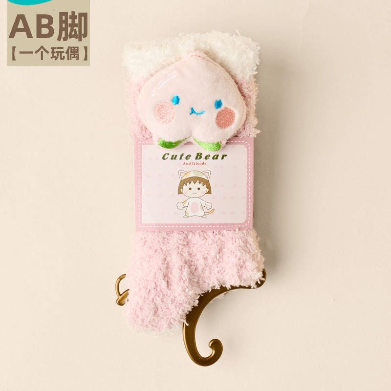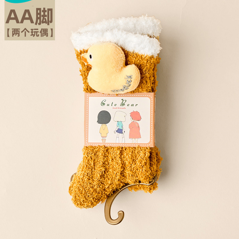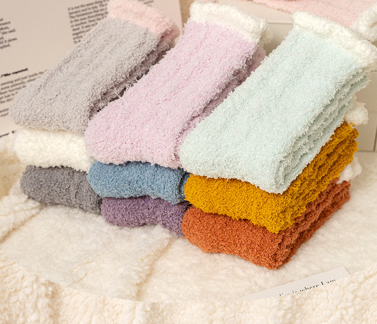 여성용 산호 벨벳 양말, 가을 겨울 플러스 벨벳 및 두꺼운 홈 일본식 단색 따뜻하고 귀여운 만화 수면 양말