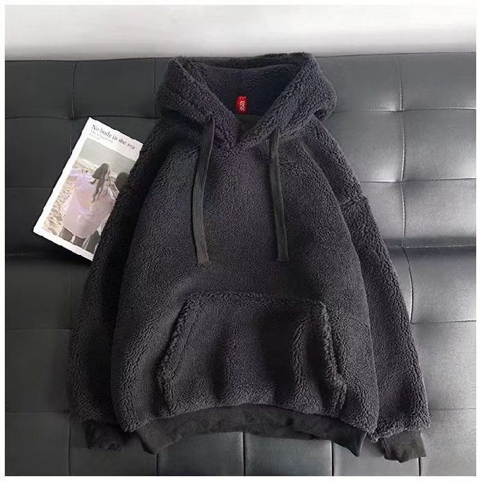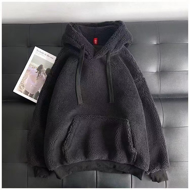 양털 느낌 스웨트셔츠 겨울 여성용 한국 스타일 심플 커플룩 남녀공용 후드티 두꺼운 루즈핏 상의