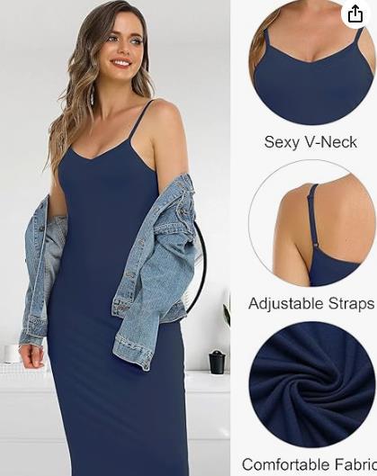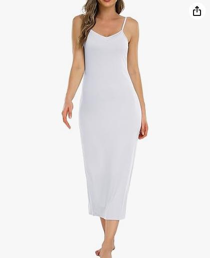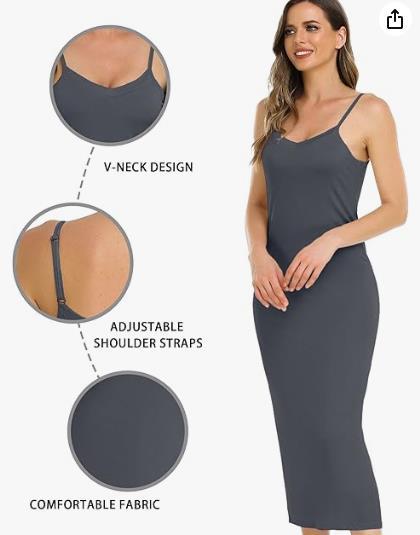 여성용 모달 슬링 원피스, 조정 가능한 얇은 어깨 스트랩 언더 스커트 롱 파자마 V-넥 슬링 원피스스토어 가기