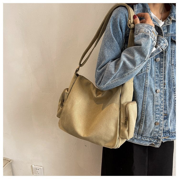 대용량 가방 여성용 2022 새로운 한국 스타일 심플 캔버스 백 패션 대용량 크로스바디 토트백 도매스토어 가기