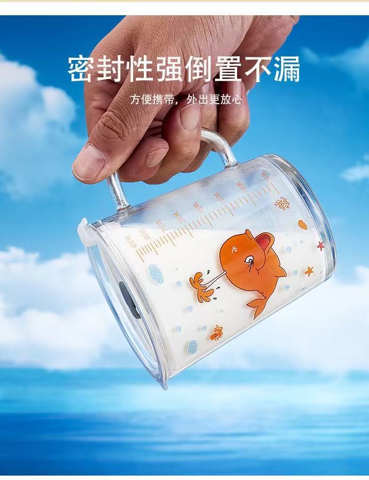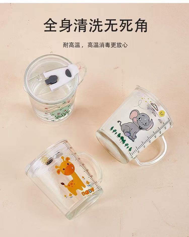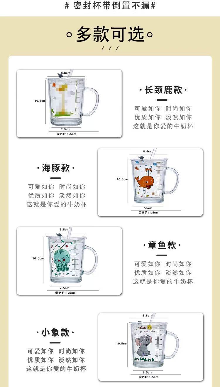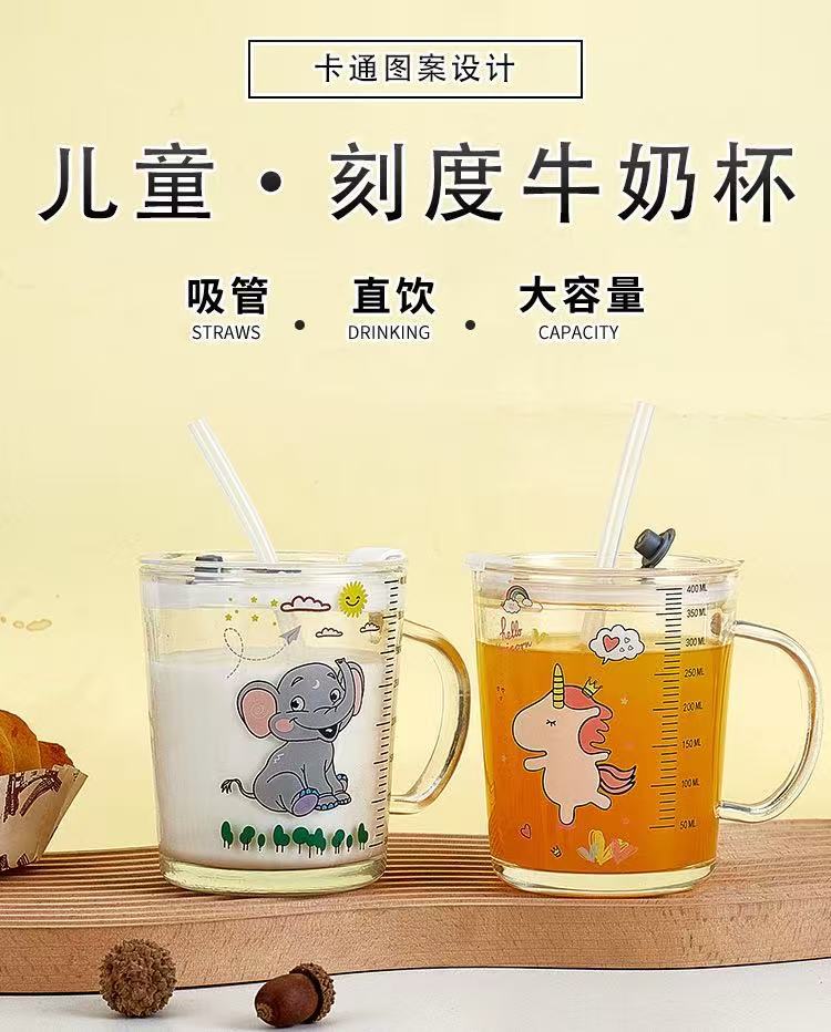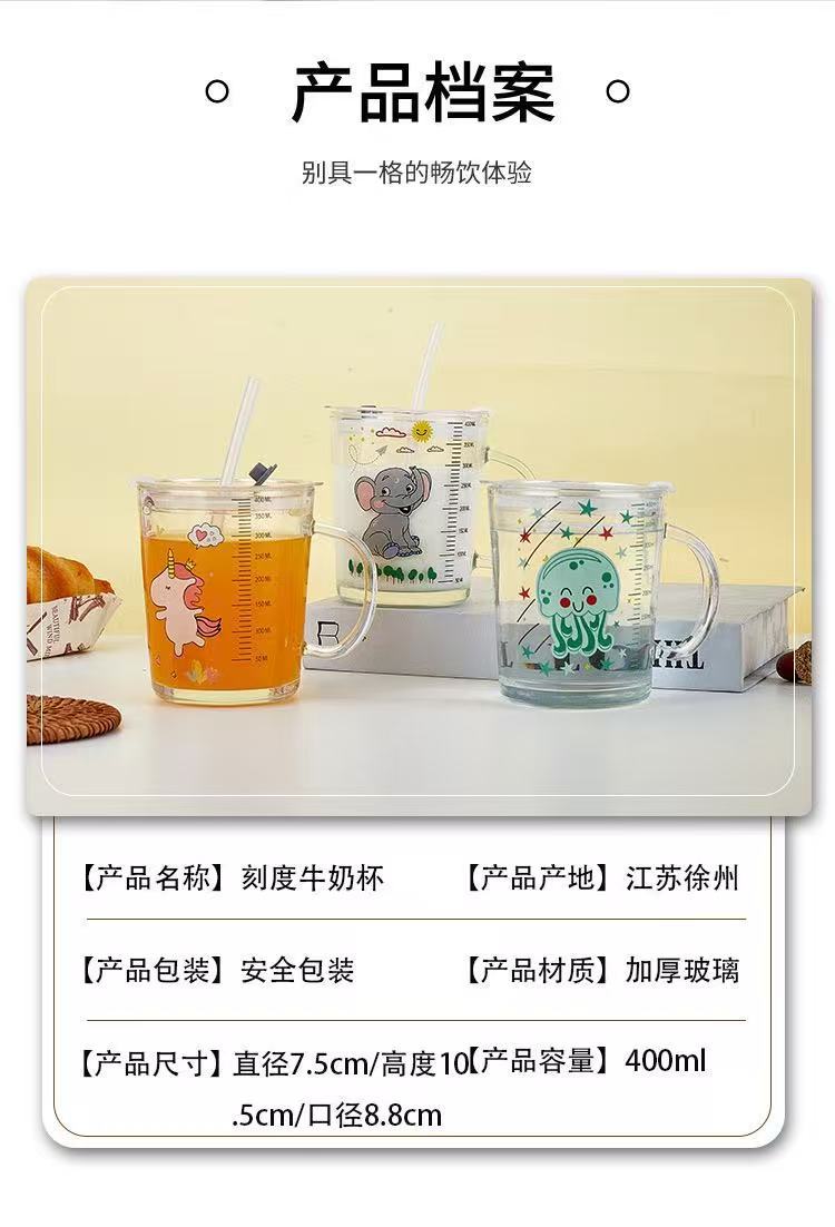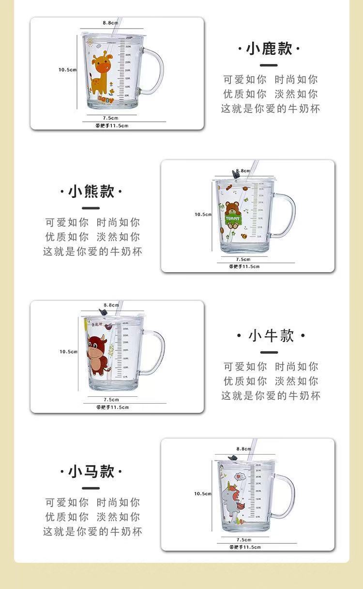 만화 눈금 우유컵, 인터넷 연예인 유리 물컵(뚜껑 포함), 어린이 빨대컵, 고온 방지 아침식사 컵(손잡이 포함)
