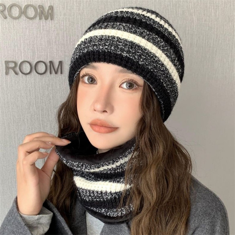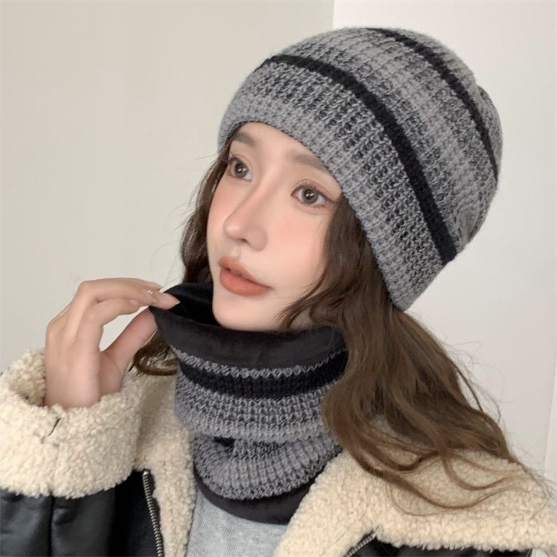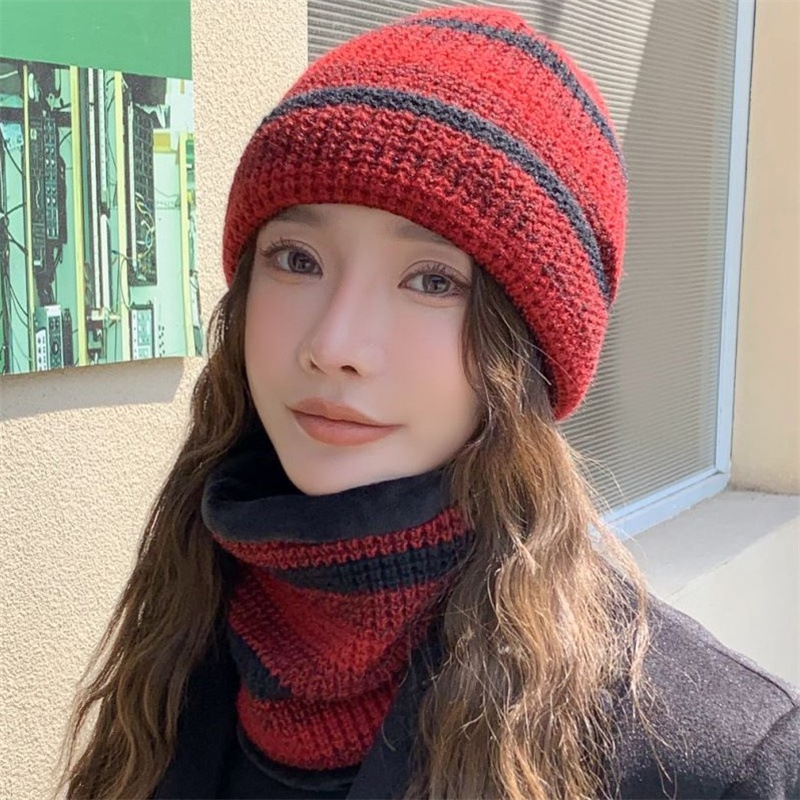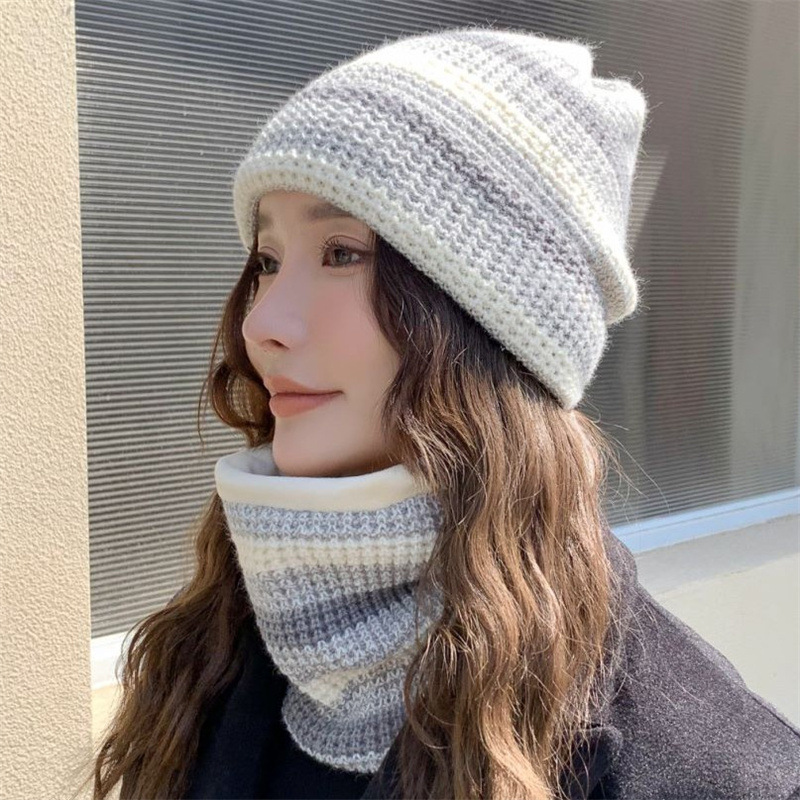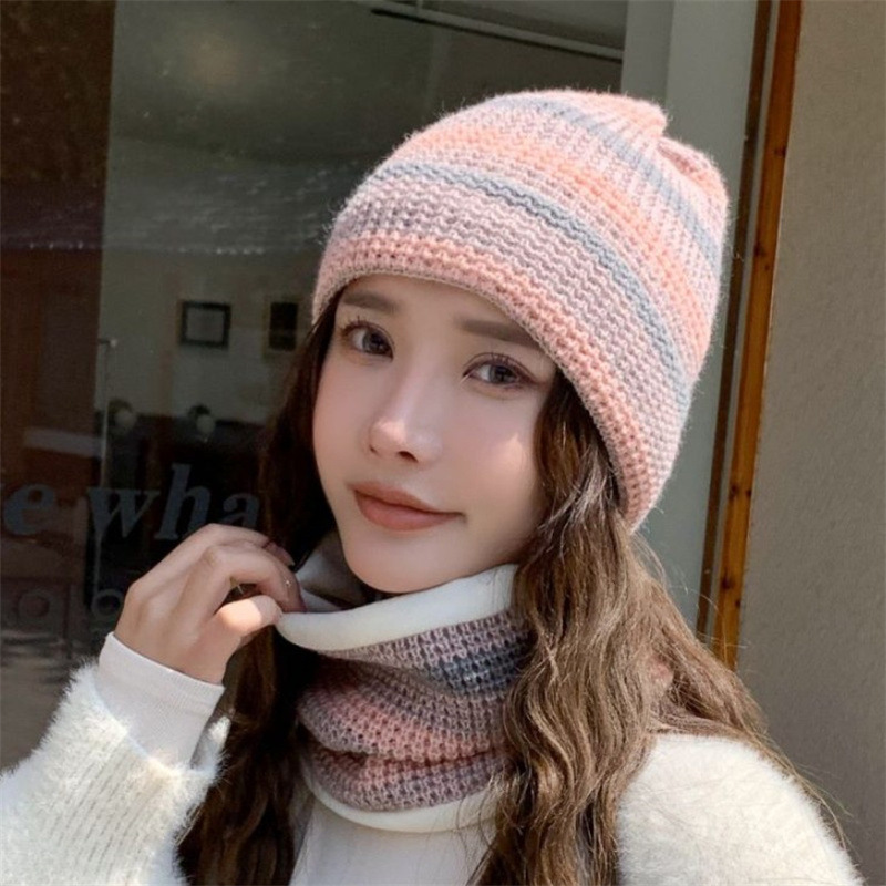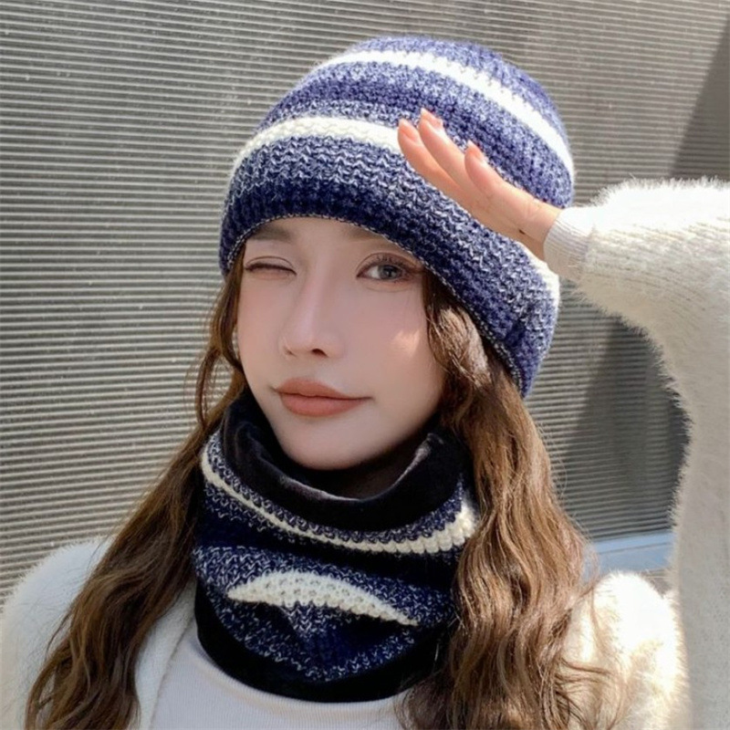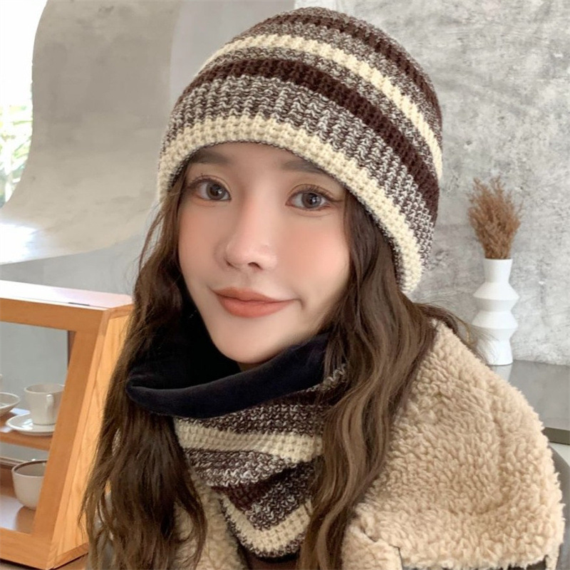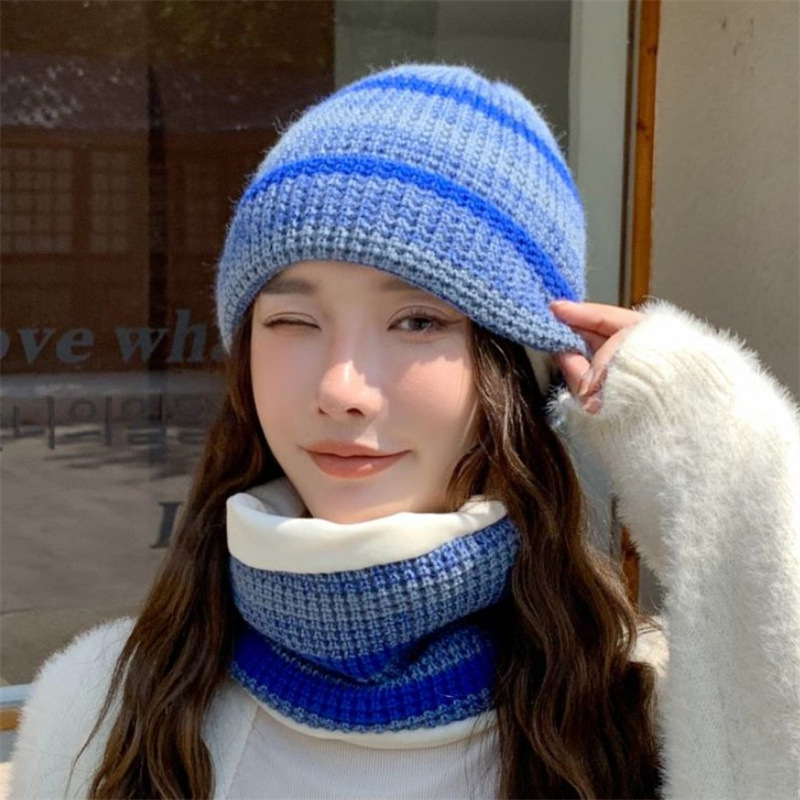 모자 여성의 가을과 겨울 모직 모자 니트 모자 한국식 학생 컬러 매칭 따뜻한 귀마개 스카프 투피스 모자스토어 가기