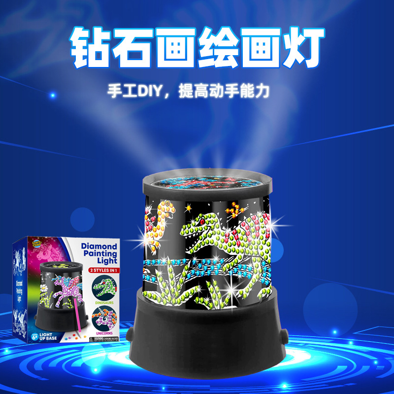 다이아몬드 페인팅 램프 DIY 어린이 수제 장난감 랜턴 LED 프로젝션 충전식 배터리 이중 사용 야간 조명스토어 가기