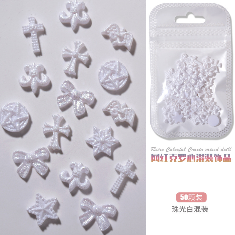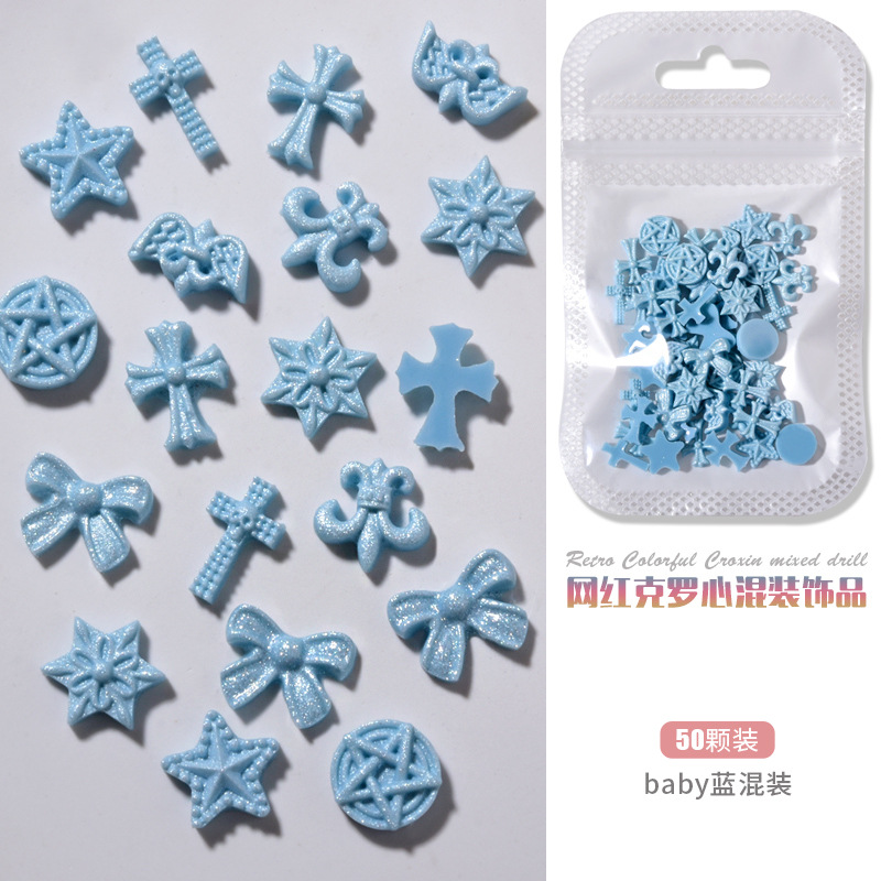 50 색 크로스 크로하트 네일 쥬얼리 오각형 스타 마카롱 컬러 수지 활 네일 액세서리