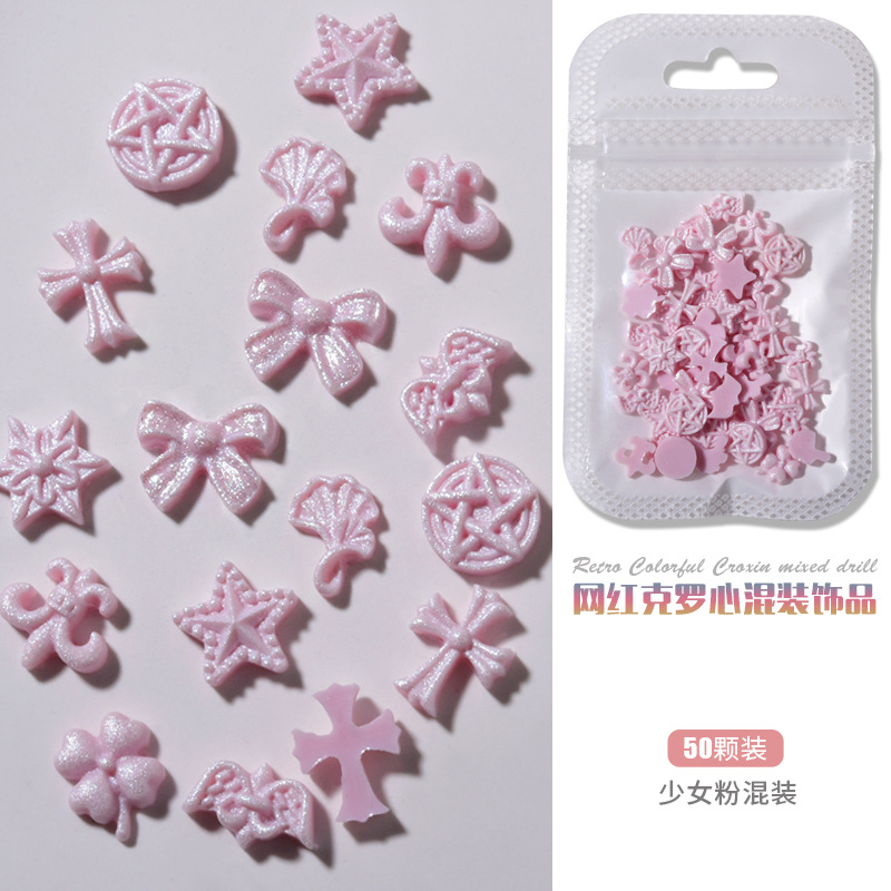 50 색 크로스 크로하트 네일 쥬얼리 오각형 스타 마카롱 컬러 수지 활 네일 액세서리스토어 가기