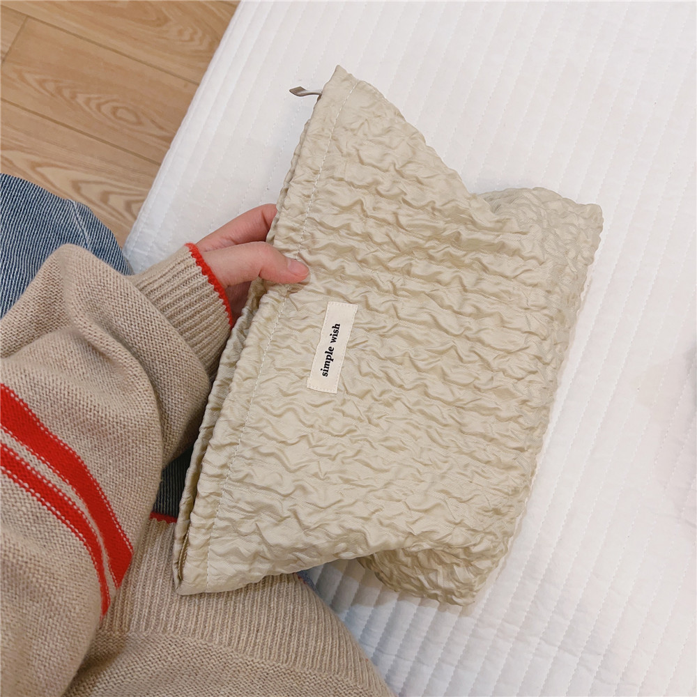[수시 천 가방] 예술적 복고풍 웨이브 패턴 주름 화장품 가방 여성용 클러치 핸드백 편리한 대용량