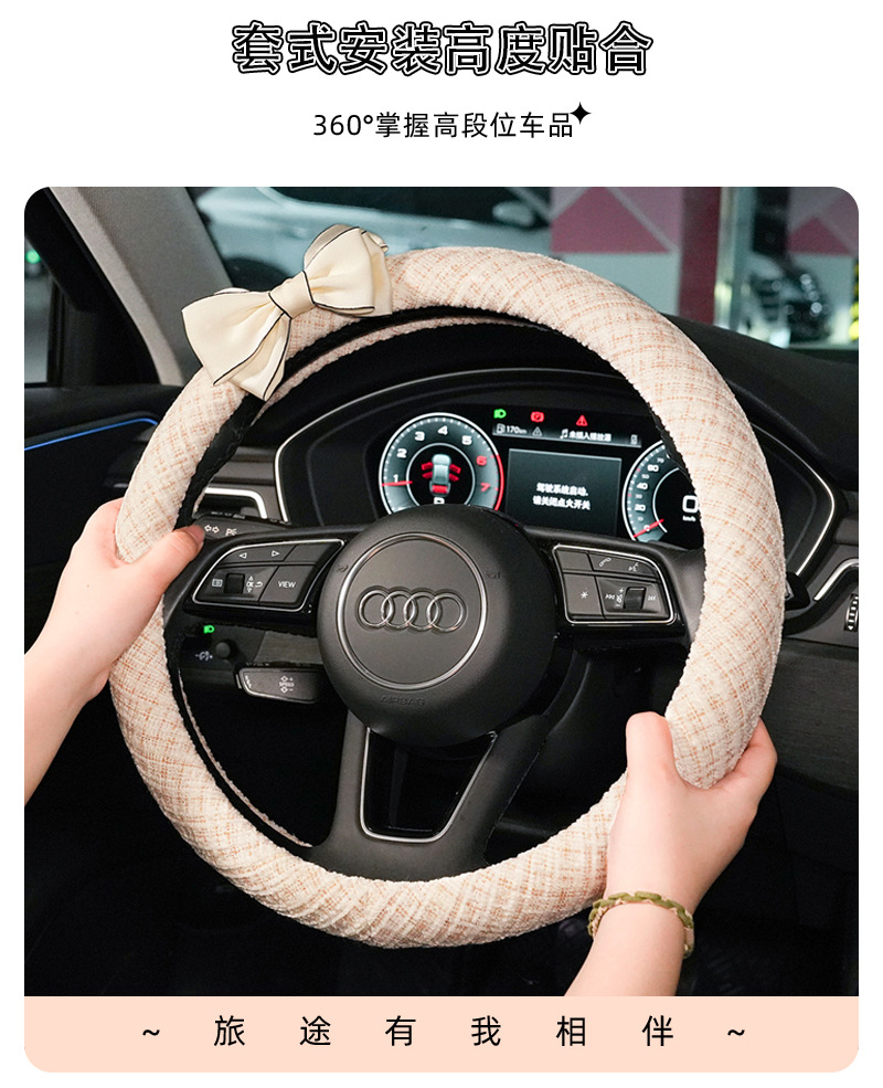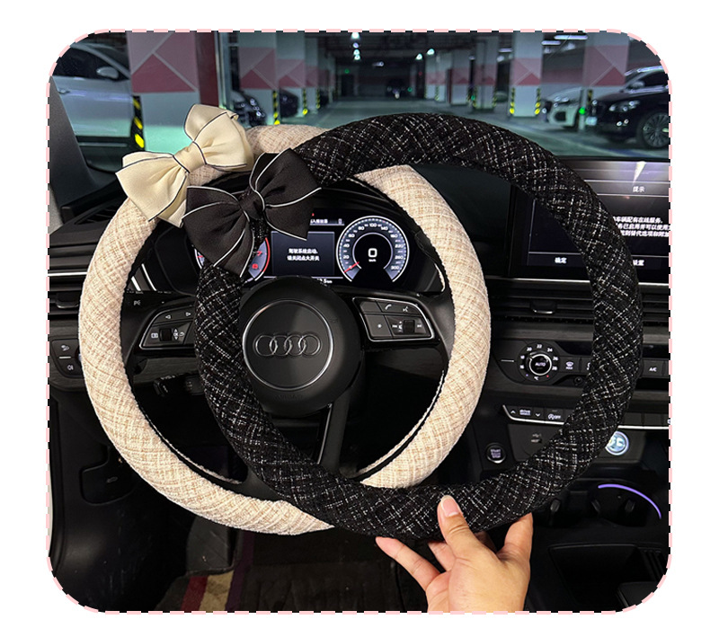 Xiao Xiang Feng 자동차 핸들 커버 여신 면 및 린넨 자동차 핸들 핸들 커버 사계절 유니버설 스티어링 휠 커버