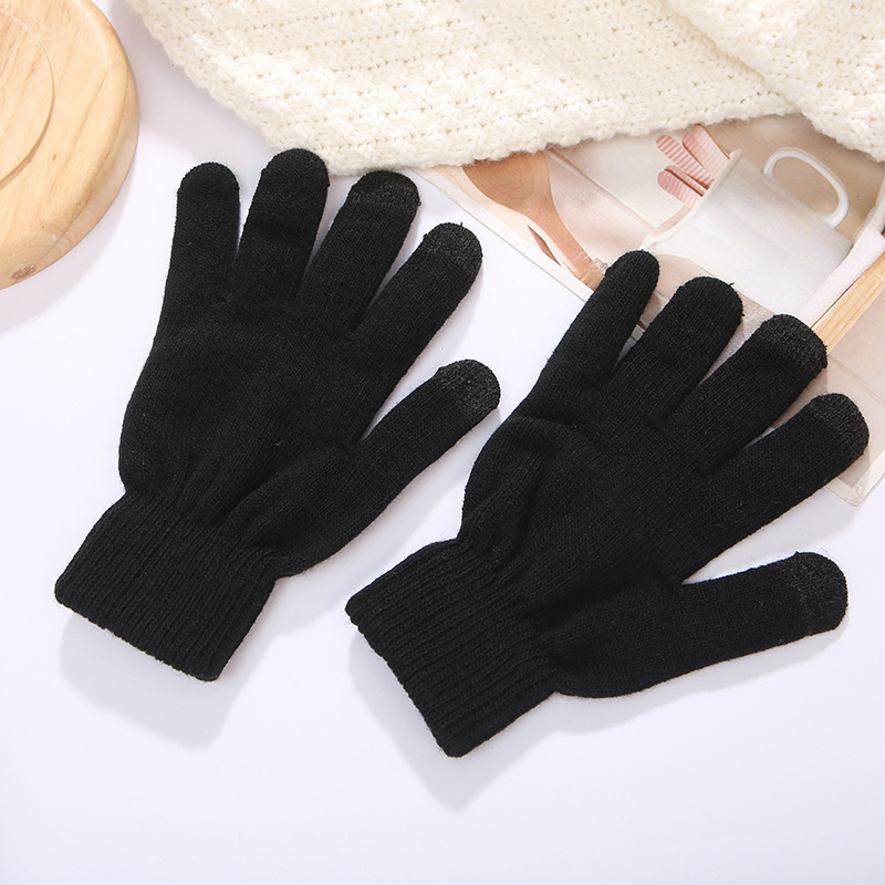 빈티지 사이클링 아크릴 장갑 단색 따뜻한 차가운 두꺼운 손가락 장갑 학생 패션 5 손가락 장갑 도매