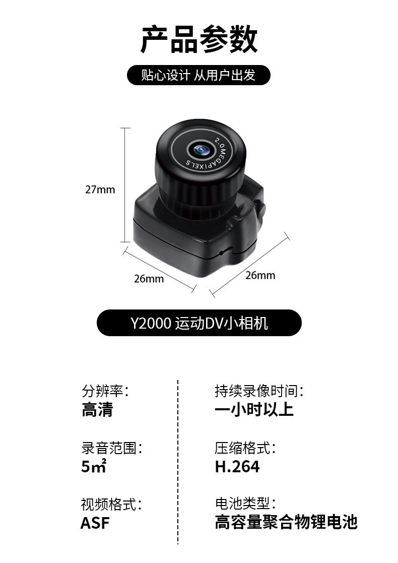 Y2000 소형 카메라 HD 비디오 카메라 1080p 야외 스포츠 소형 카메라 md80 초장시간 배터리 스포츠 DV스토어 가기
