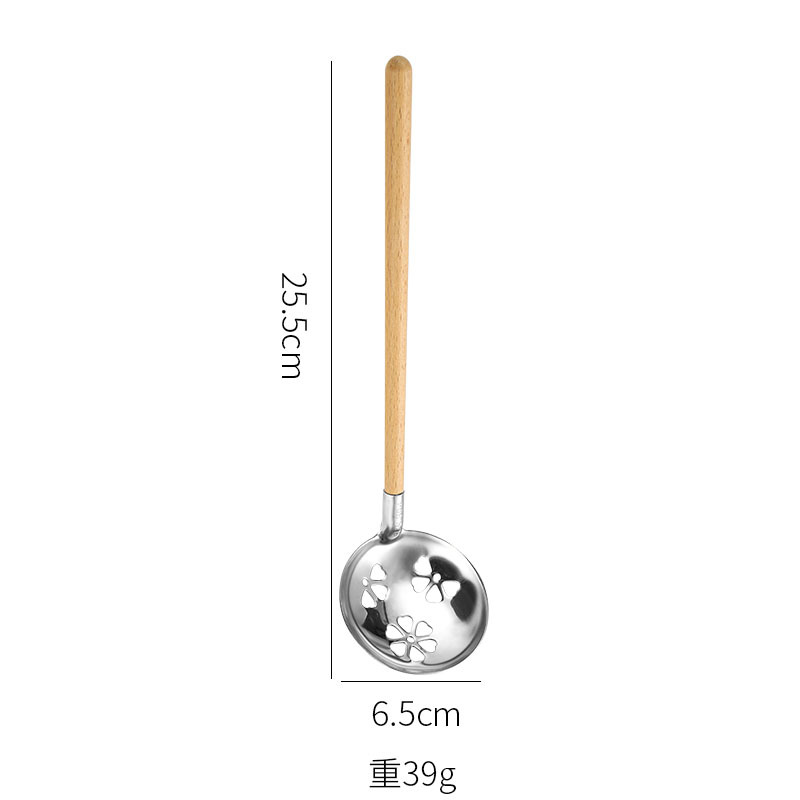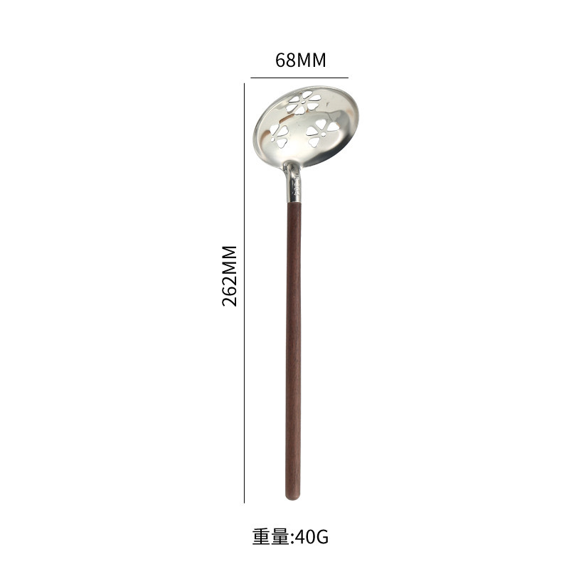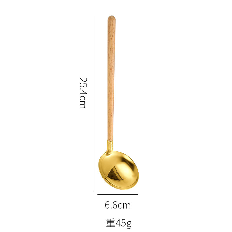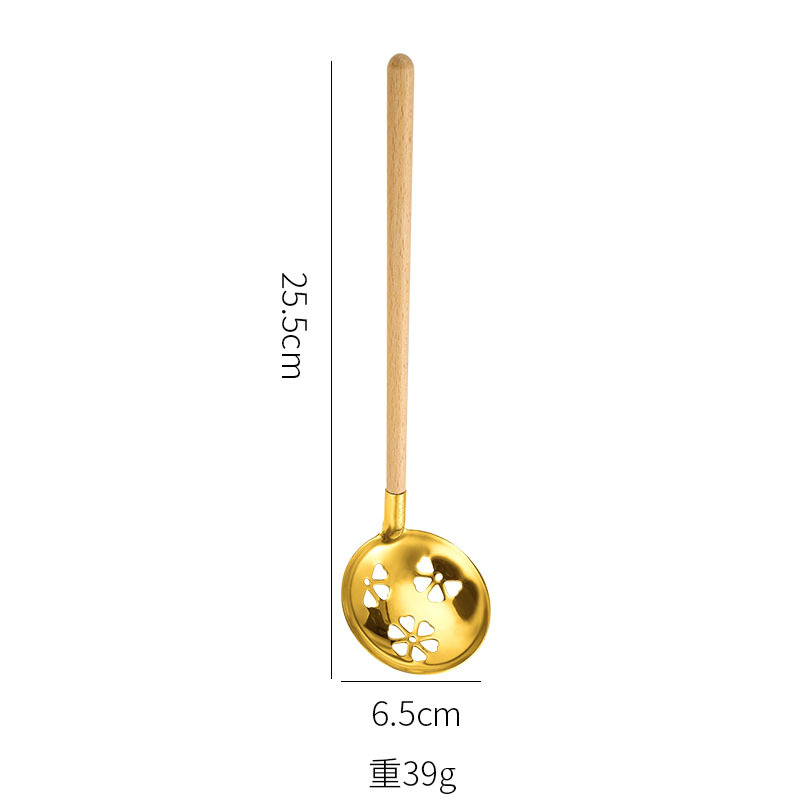 황금 304 스테인레스 스틸 나무 손잡이 수프 요리 숟가락 수프 껍질 수프 깔때기 숟가락 냄비 수프 숟가락 색소 부엌 도구