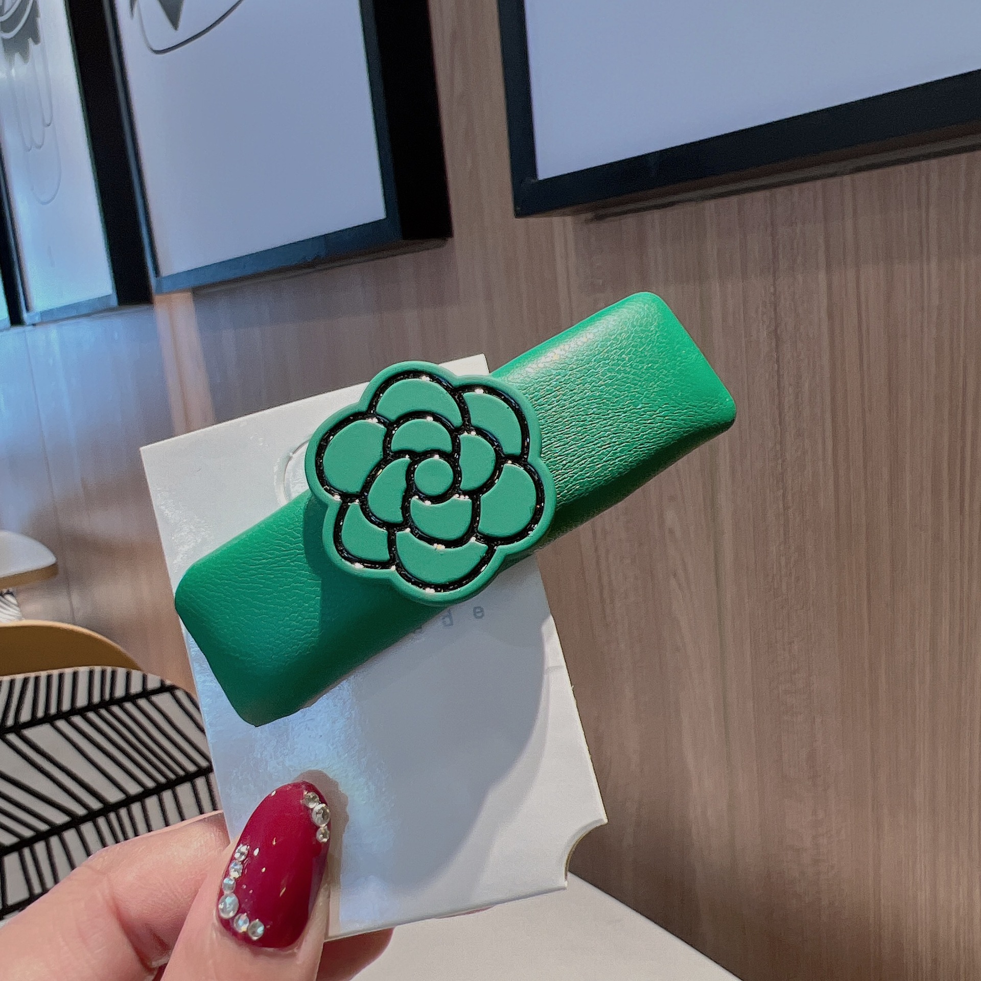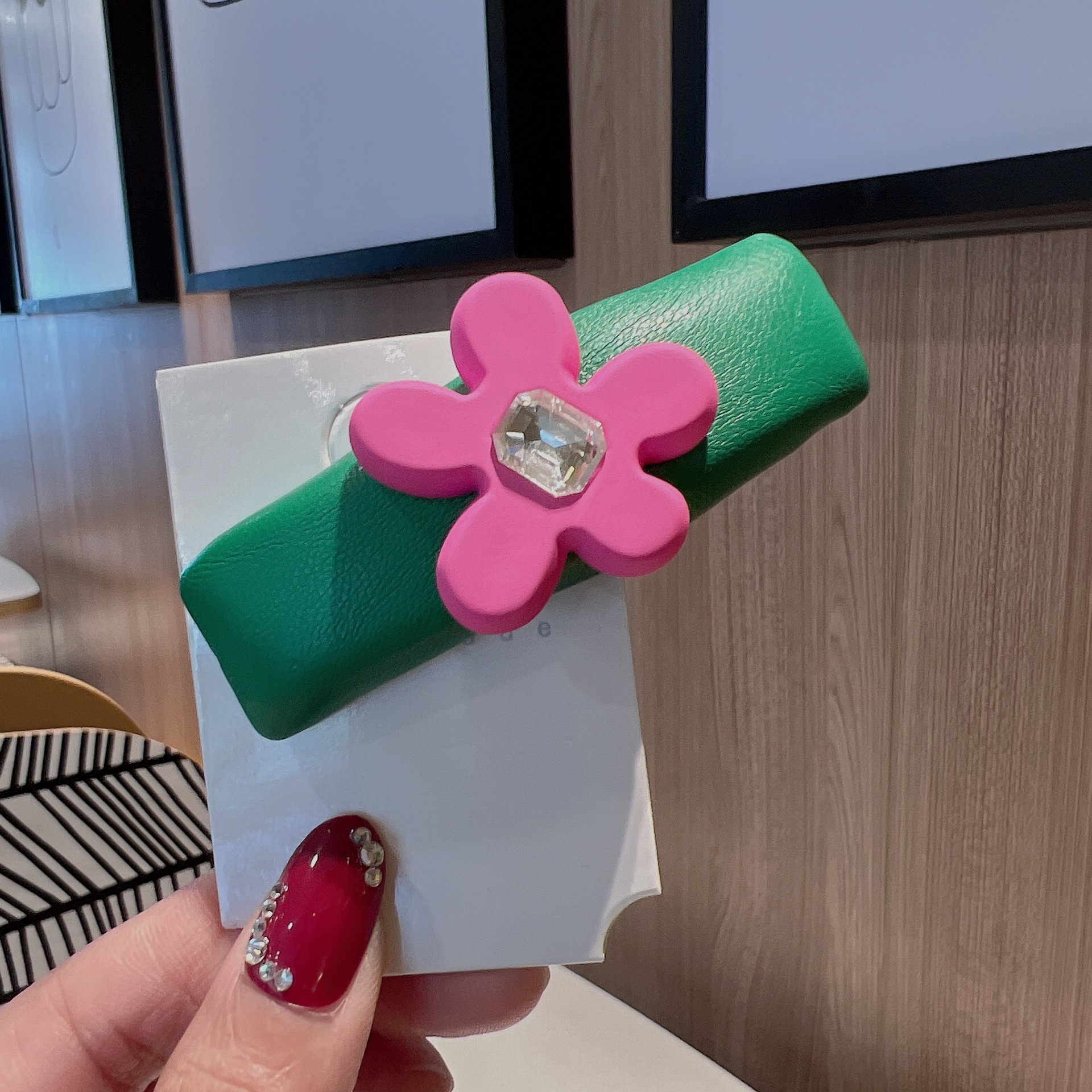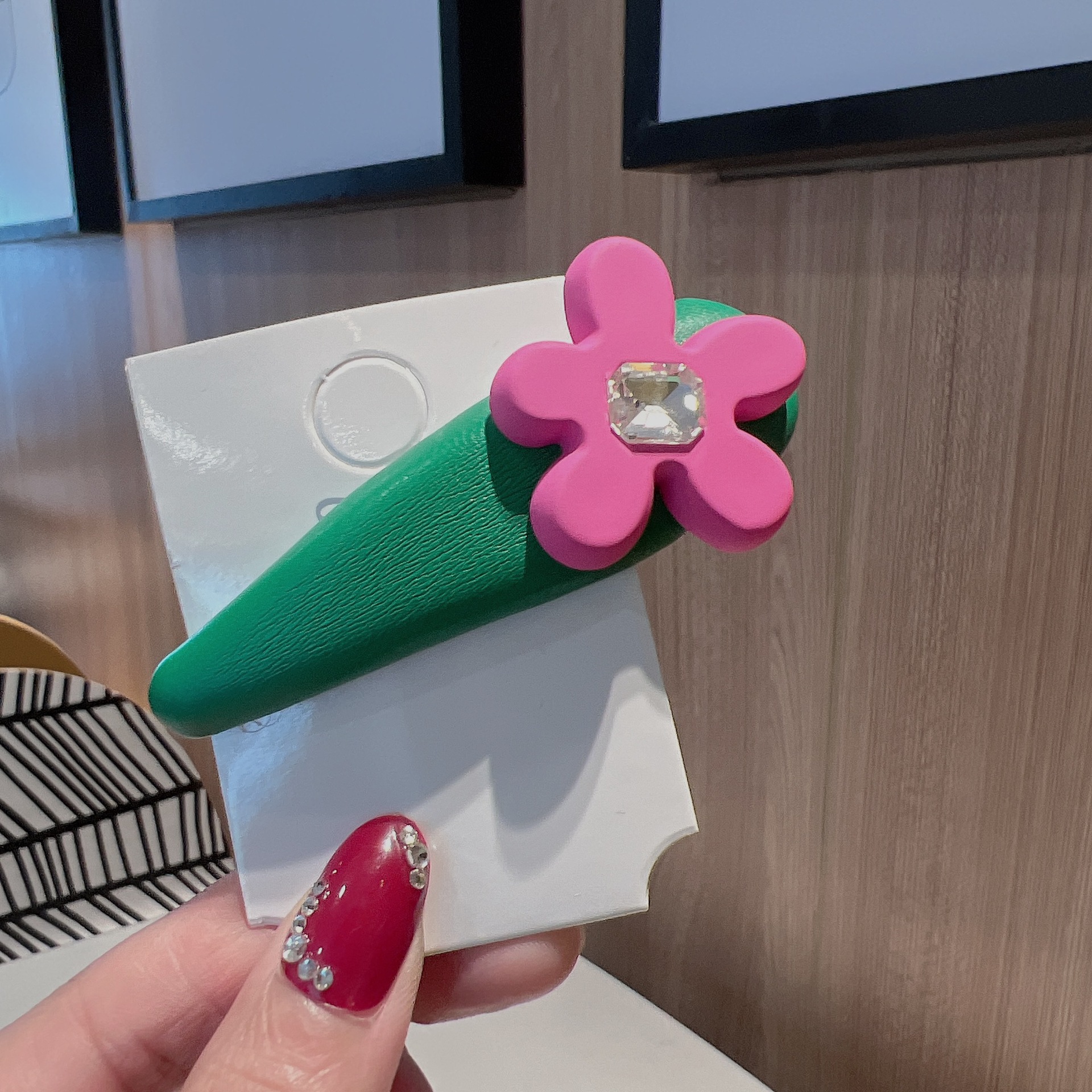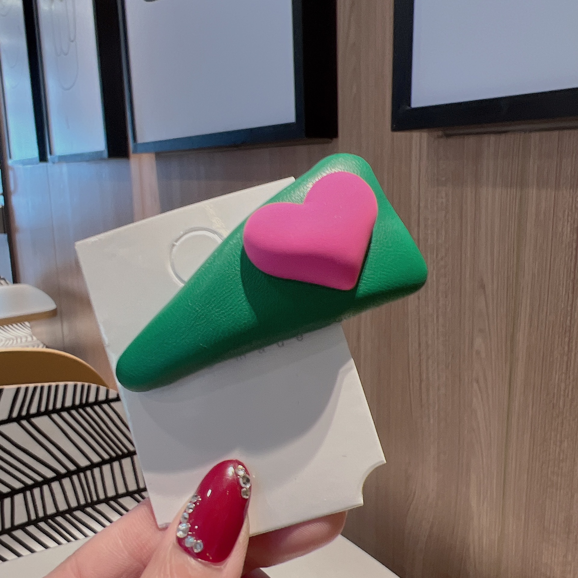 한국 패션 그린 가죽 귀여운 스폰지 기질 앞머리 클립 사이드 클립 BB 클립 깨진 헤어 클립 헤드 웨어스토어 가기