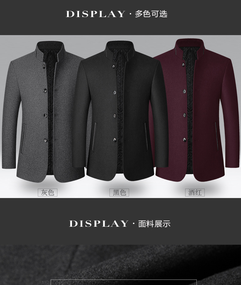 2025 가을, 겨울 새로운 중년 남성 재킷 모직 코트 스탠드 칼라 모직 코트 캐주얼 남성 의류스토어 가기