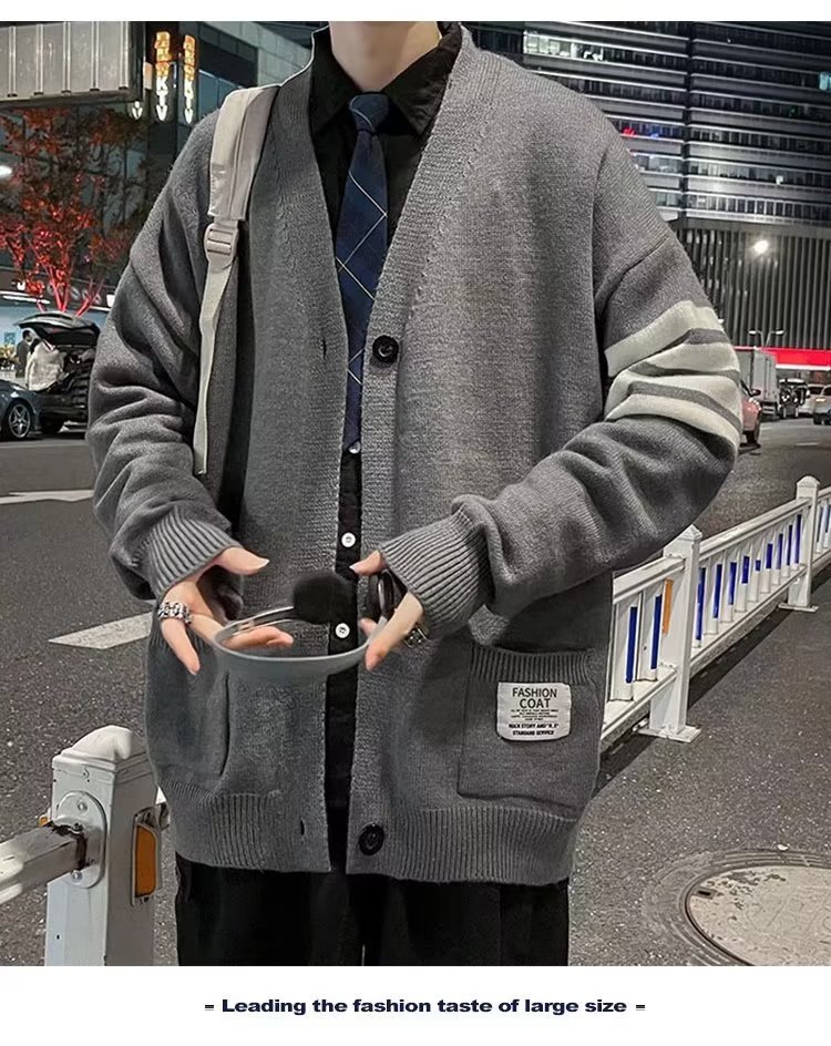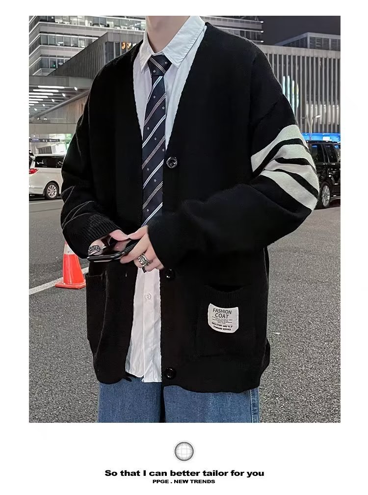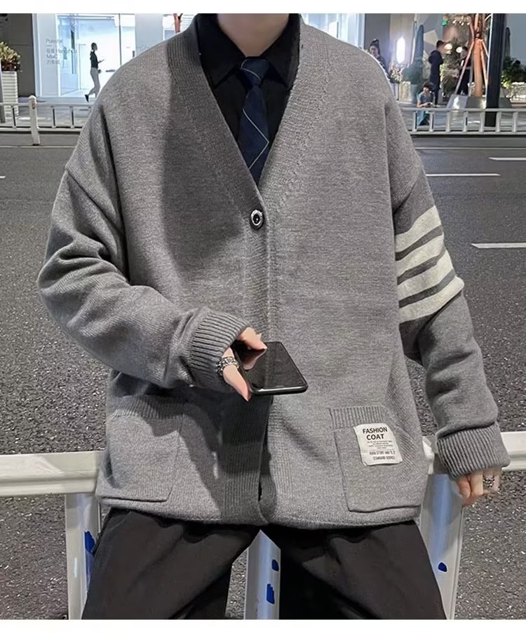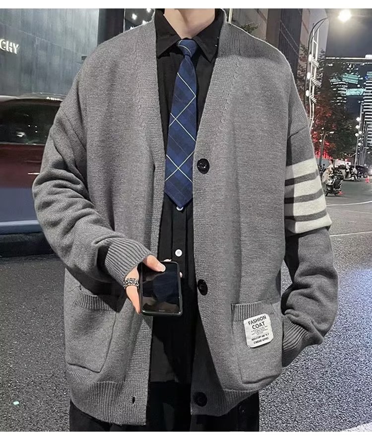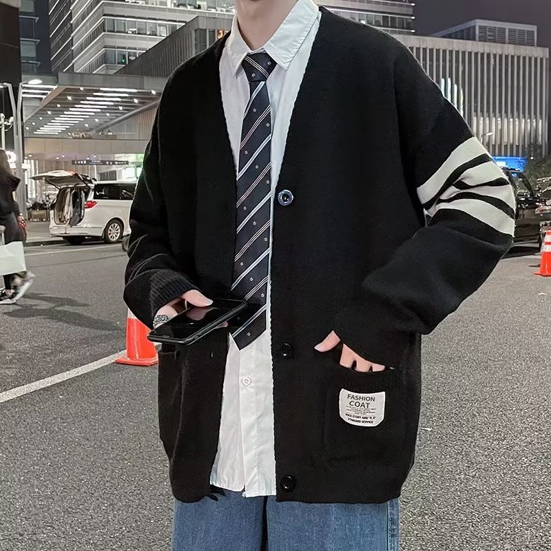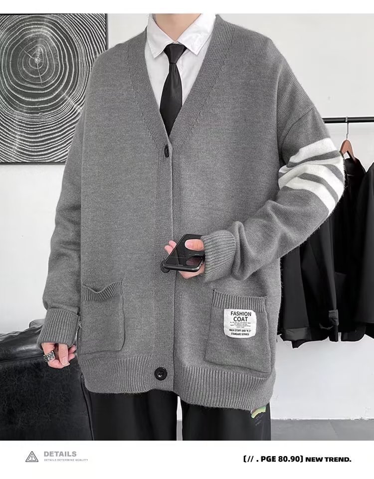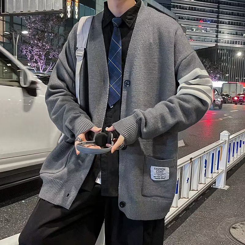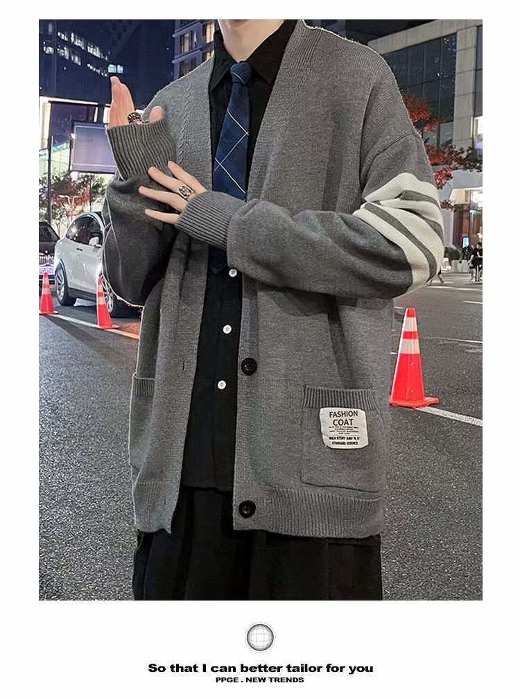 가디건 스웨터 코트 남자의 가을 새로운 유행 브랜드 느슨한 먼지 니트 스웨터 홍콩 스타일 스티칭 모든 매치 커플 스웨터