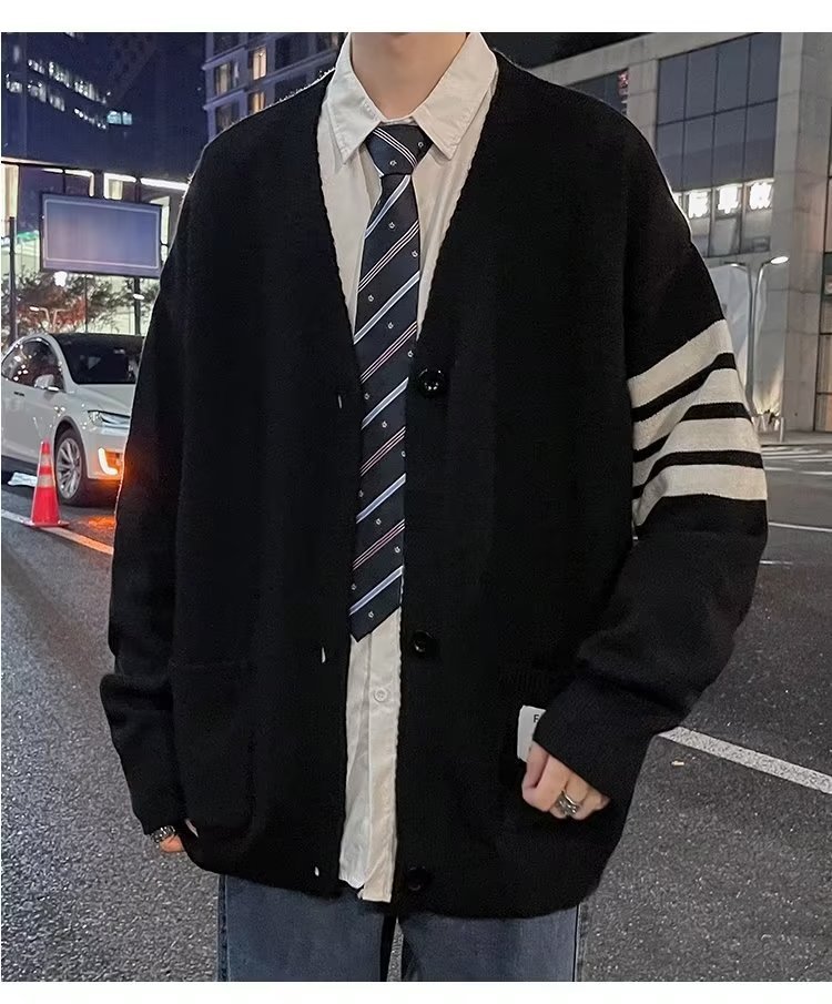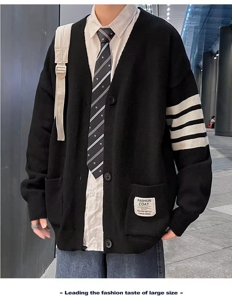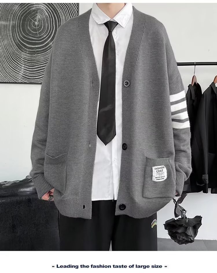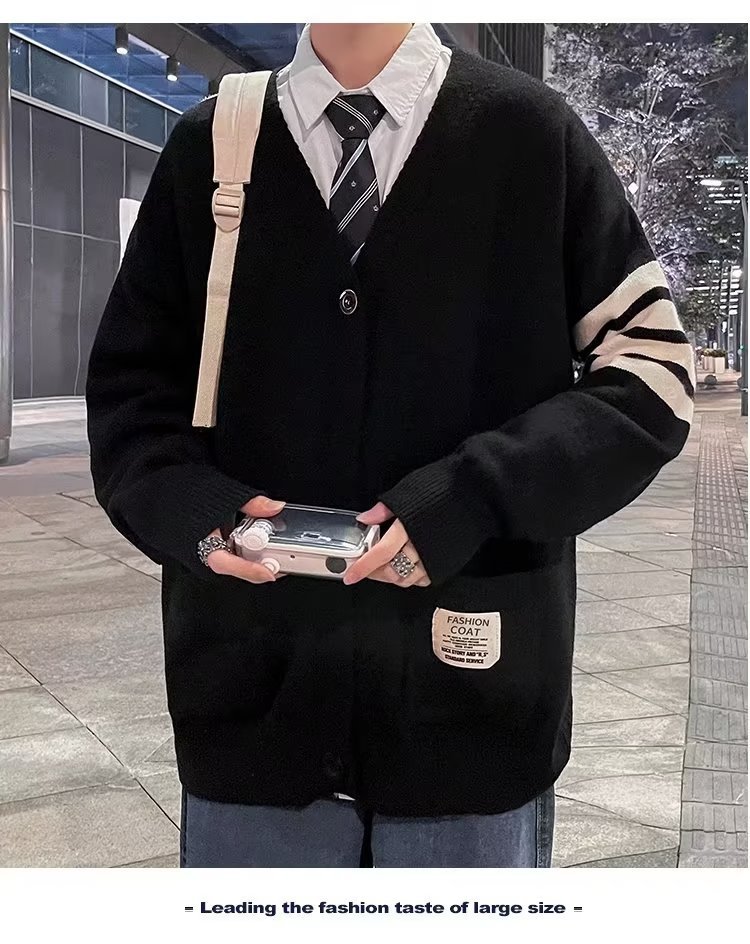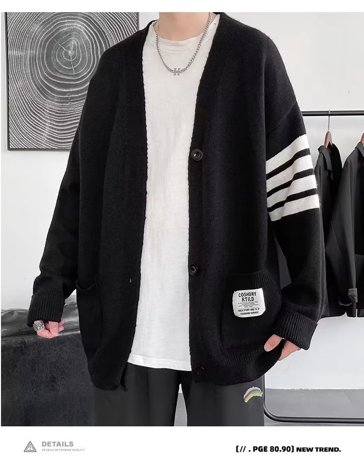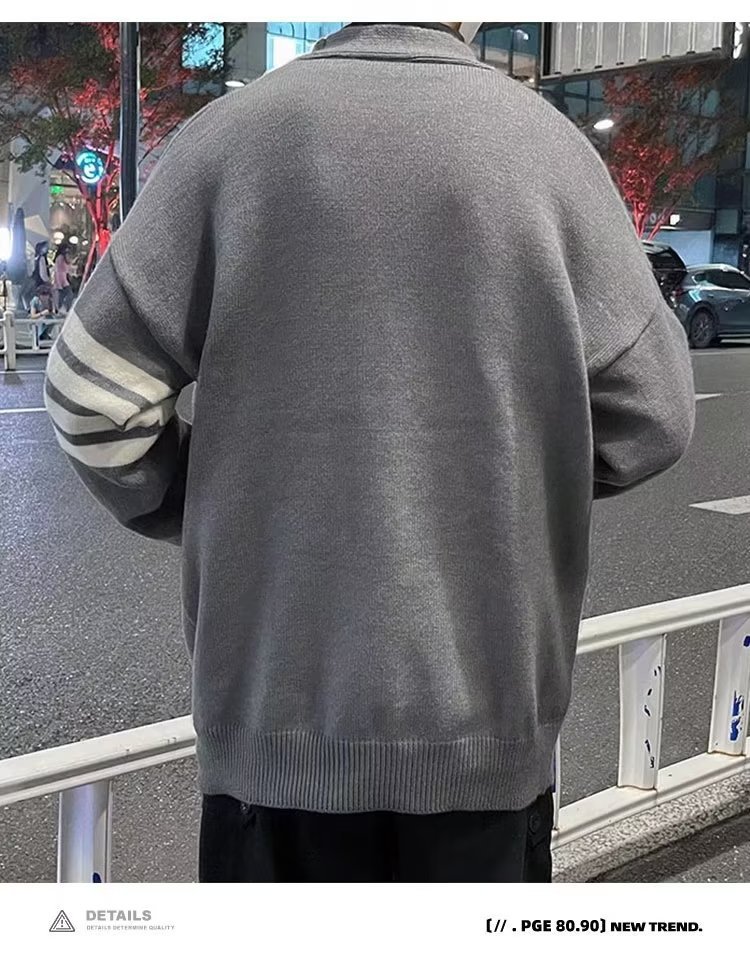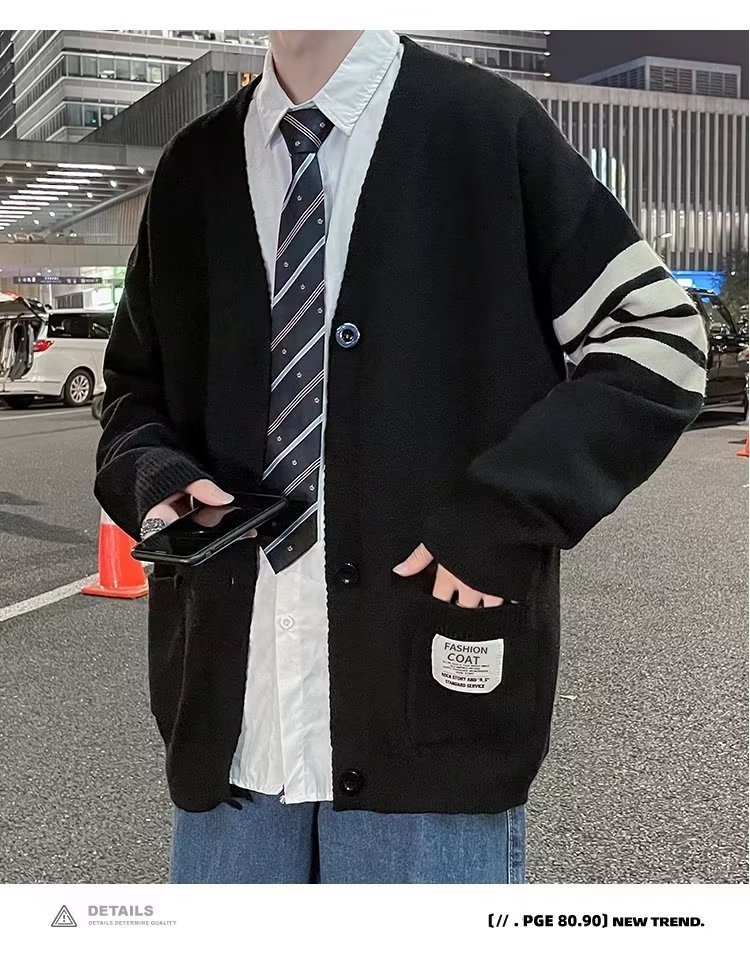가디건 스웨터 코트 남자의 가을 새로운 유행 브랜드 느슨한 먼지 니트 스웨터 홍콩 스타일 스티칭 모든 매치 커플 스웨터
