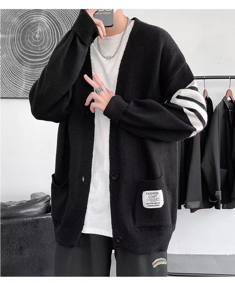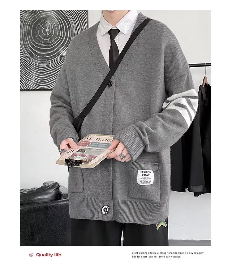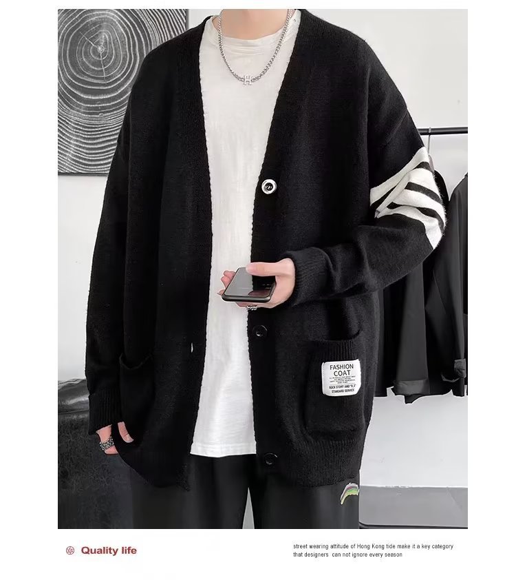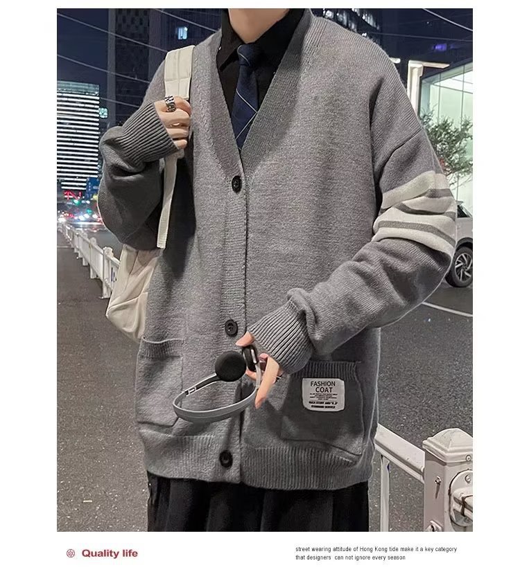 가디건 스웨터 코트 남자의 가을 새로운 유행 브랜드 느슨한 먼지 니트 스웨터 홍콩 스타일 스티칭 모든 매치 커플 스웨터스토어 가기