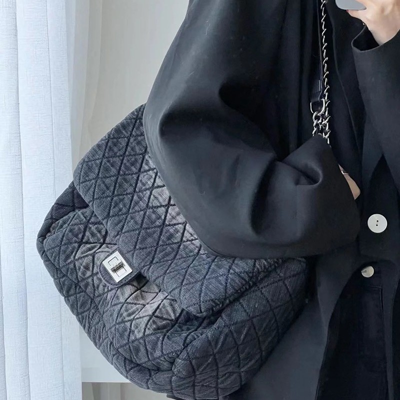 2022 새로운 가을과 겨울 데님 호보 마름모꼴 체인 백 대용량 어깨 겨드랑이 가방 여성 모든 매치 크로스바디 백