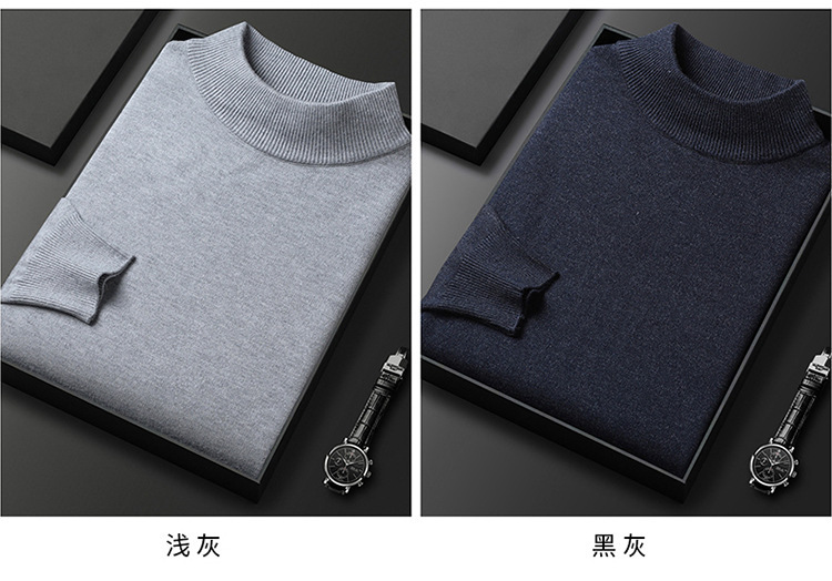 가을, 겨울 남성 스웨터 하프 터틀넥 니트 바닥 셔츠 젊은 및 중년 남성 슬림 솔리드 컬러 풀오버 스웨터 크로스보더스토어 가기