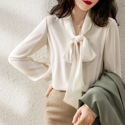 리본 요소 우아한 여성 기질 2023 봄과 가을 새로운 단색 탑 여성용 활 셔츠스토어 가기