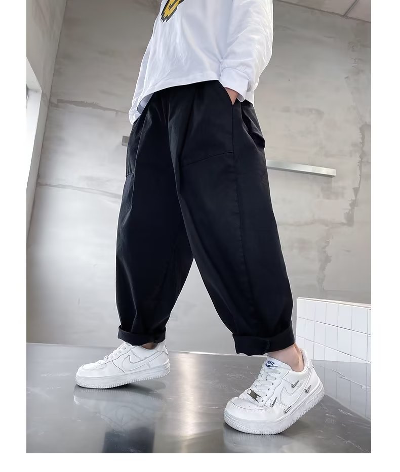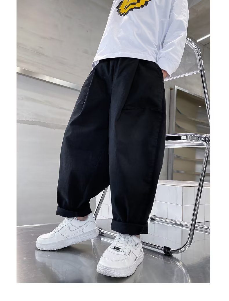어린이 가을 2022 새로운 트렌디 쿨 빅 보이 아동복 느슨한 캐주얼 바지 봄과 가을 할란 세트 바지