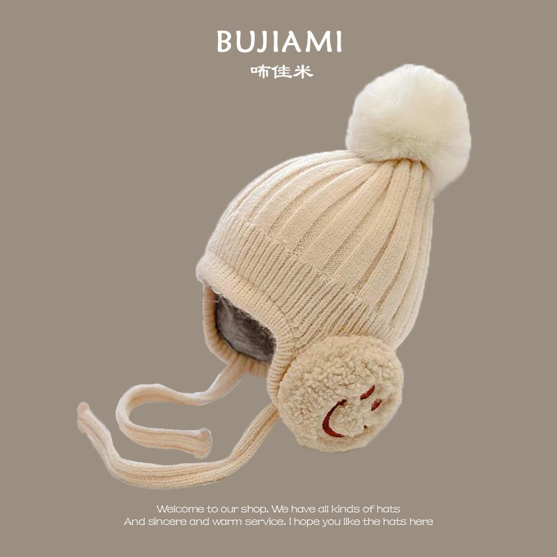 어린이 모자 한국 아기 같은 베이지 시리즈 가을과 겨울 소년과 소녀 방풍 귀 보호 따뜻한 니트 모자스토어 가기