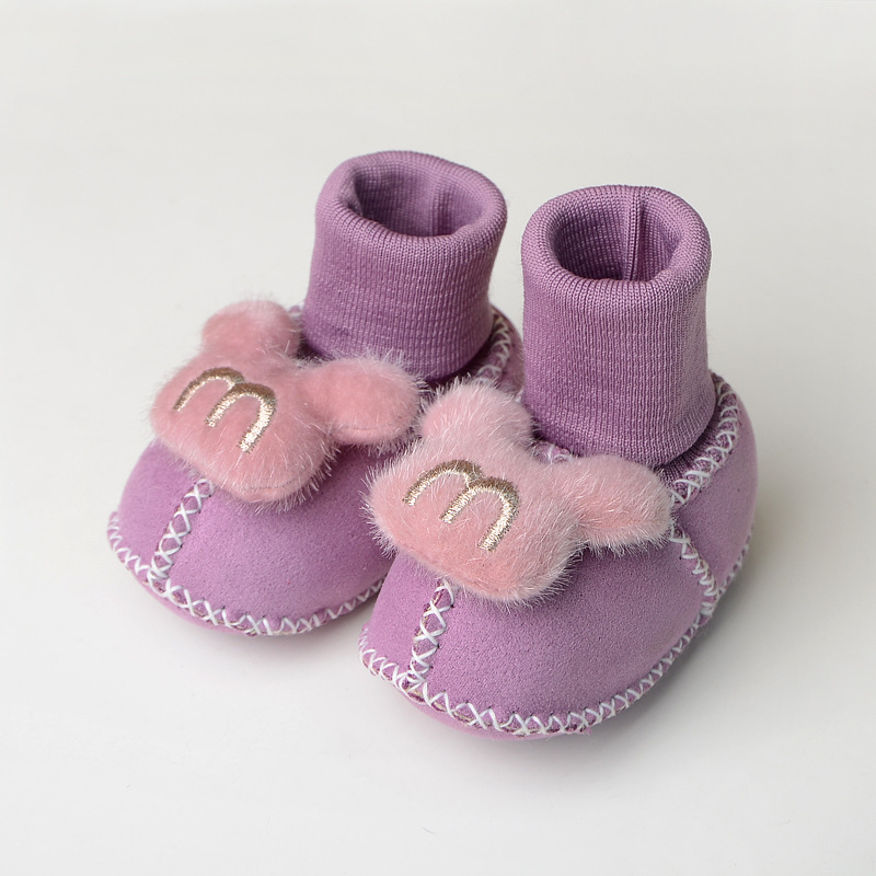 겨울 따뜻하고 두꺼운 신생아 면화 신발, 아기 유아 신발, 벨벳 부드러운 바닥 바닥 신발, 낙하 방지 만화 아기 신발