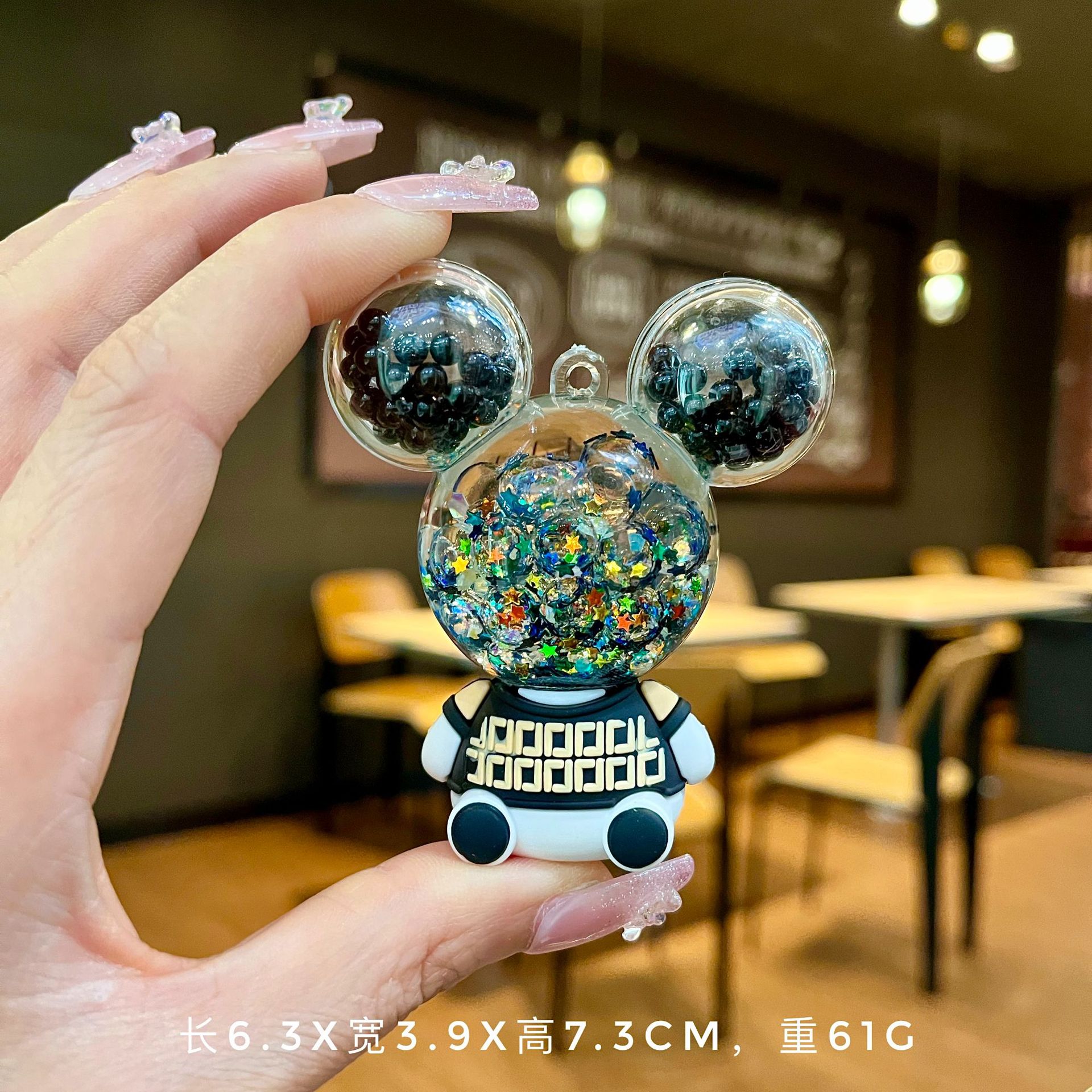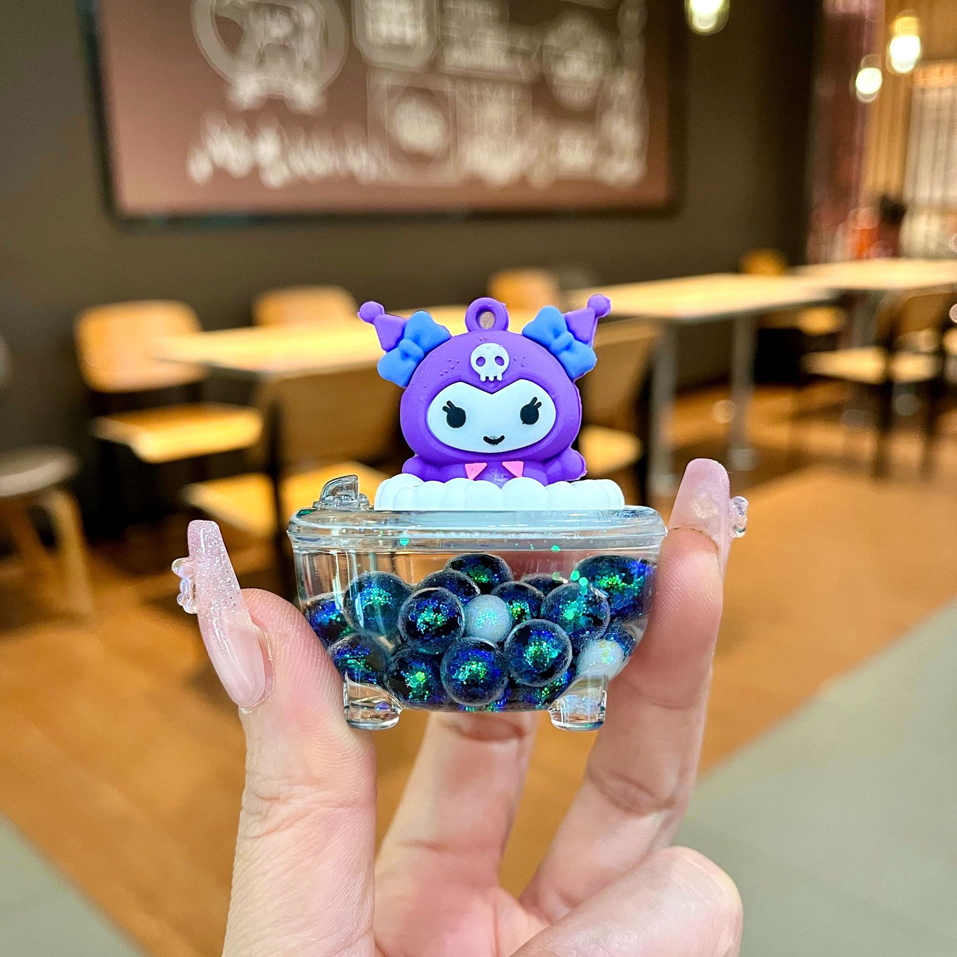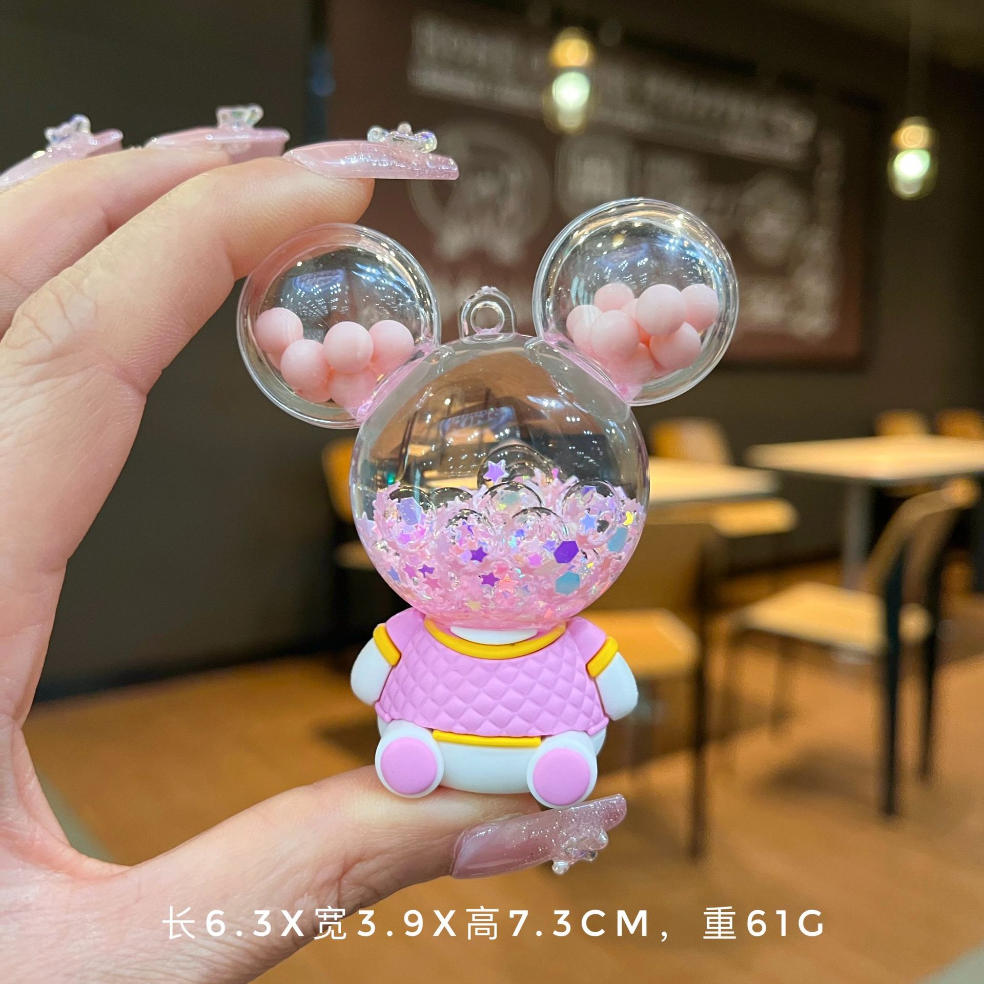 새로운 아크릴 quicksand 병 열쇠 고리 펜던트 만화 인형 욕조 데스크탑 장식품 가방 매달려 보석 선물