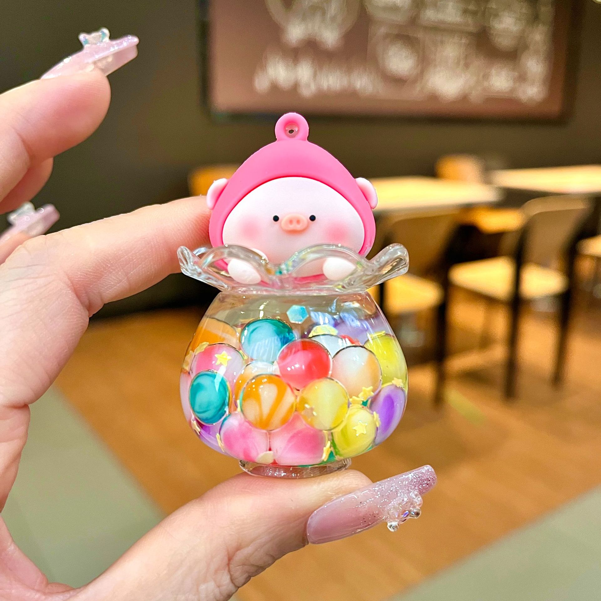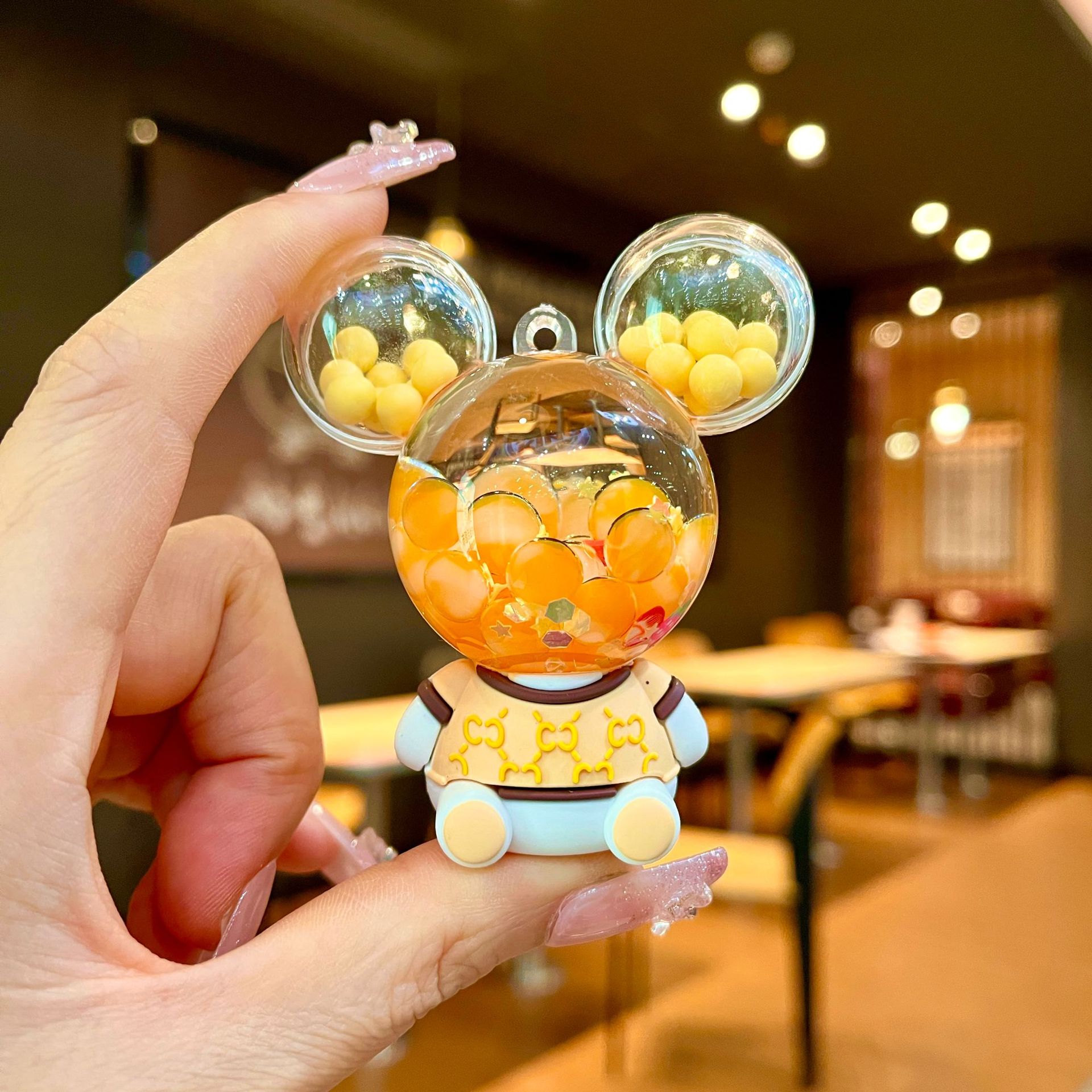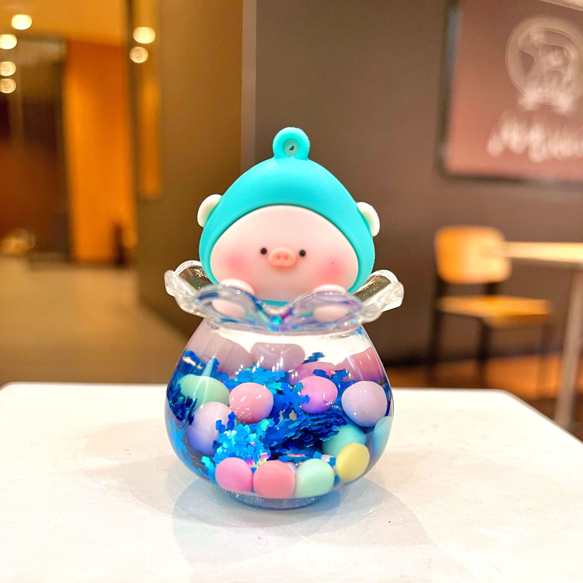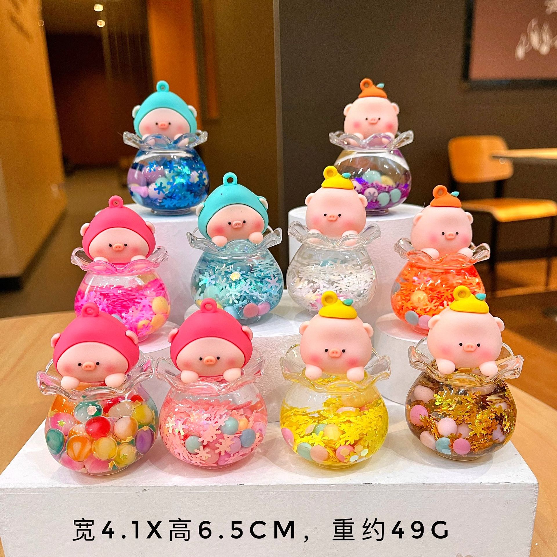 새로운 아크릴 quicksand 병 열쇠 고리 펜던트 만화 인형 욕조 데스크탑 장식품 가방 매달려 보석 선물