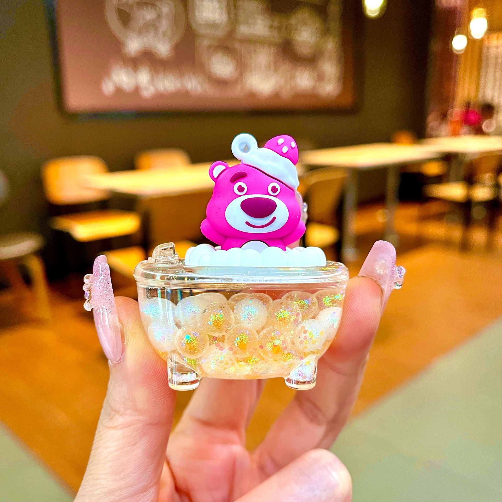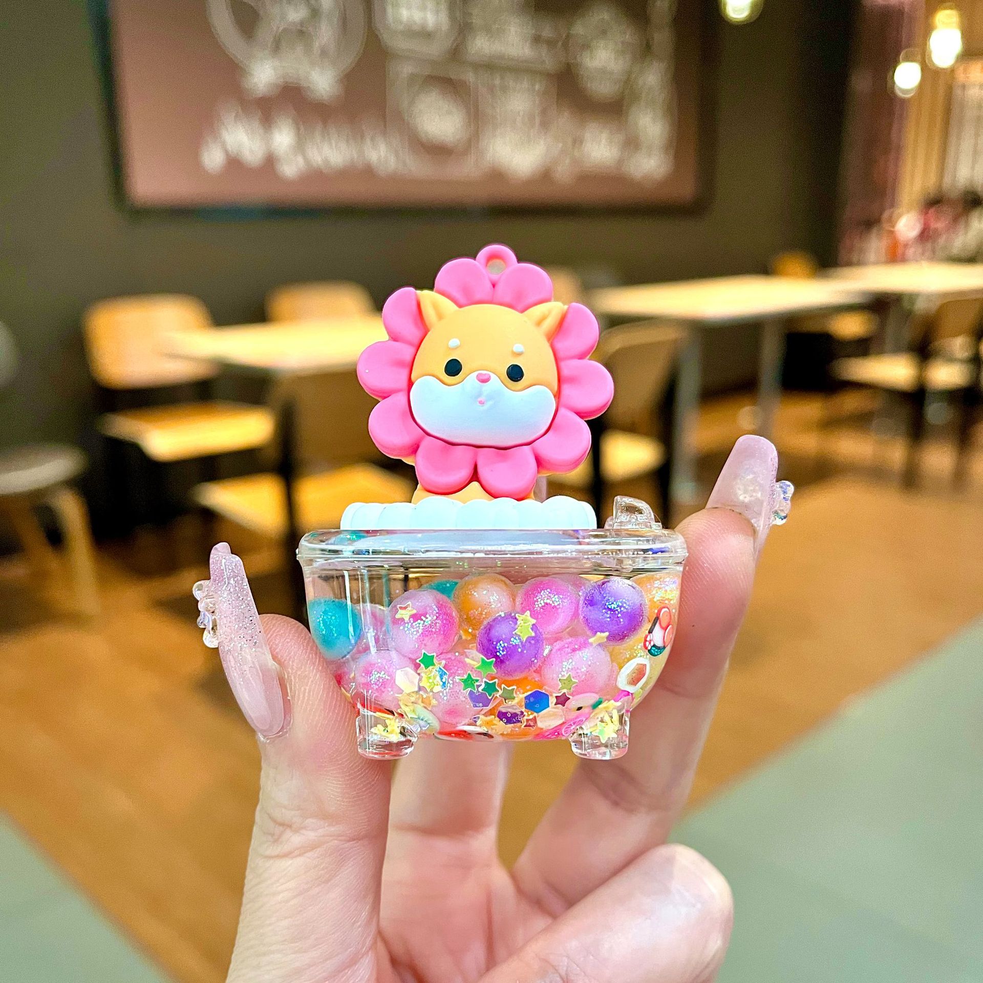 새로운 아크릴 quicksand 병 열쇠 고리 펜던트 만화 인형 욕조 데스크탑 장식품 가방 매달려 보석 선물스토어 가기