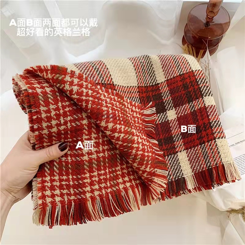 부드럽고 피부 친화적인 필링이 없는, 가을과 겨울 여성을 위한 빨간색 양면 체크 스카프, 만능 한국식 일본 복고풍 스카프스토어 가기